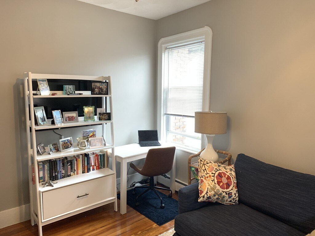 Avail in Now! Sunny penthouse 1+/2BD w/modern kitchen & bathroom,excellent closet space + roof deck. This floor-through features tall ceilings,hardwood floors,exposed brick walls,2 large bedrooms,walk-in closet/office and flexible layout. The kitchen,w/granite counters,subway tile backsplash & stainless steel appliances,opens to an elegant room w/ exposed brick accent wall,currently used as the dining room. In its current configuration the front room is set as a bedroom (can fit a king bed) but can also accommodate large living room set. 10' 9" x 8' space off this room is now used as walk-in closet but can be an office. Rear bedroom (16'2'' x 12'5'') w/large closet is currently set up as a living room/office but can accommodate king-size bed. The roof deck has panoramic views of Boston & Zakim bridge & is shared w/just 2 other units. Laundry is free & in the building. Enjoy a central location near Orange Line,92/93 Bus,RT 93,Whole Foods & the restaurants of 02129. MLS# 73468061