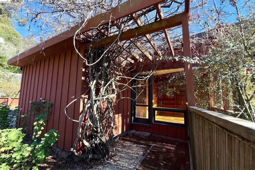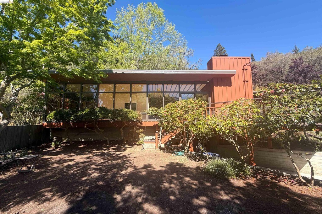 Rustic Mid-Century,formally a Potter's artist retreat. One level living. Lots of natural wood and glass. Used as a 4-bedroom or 3-bedroom with a very large family room. Two and a half baths. Many original built-ins and storage. Great indoor-outdoor access to a natural,big garden in a rural setting. Updated kitchen and baths,Laundry has W/D,and 1/2 bath. Decent off-street parking and basement storage. Unique home that has a Big Sur/Marin vibe and an organic feel,and is private. An easy distance to Village Shops,Awarded Hilltop school,parks,and Pub. Transportation stops on Arlington Ave. BART and the Cal Campus are approx. 8 minutes away. The commute to S.F. is about 35 min. w/out traffic. 60 w/ traffic. If you love a serene setting,in nature with natural light and an unpretentious quality,you will love this. Apply with RentSpree
