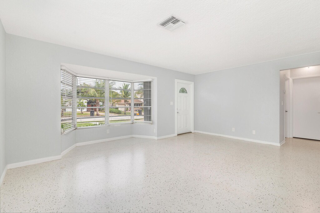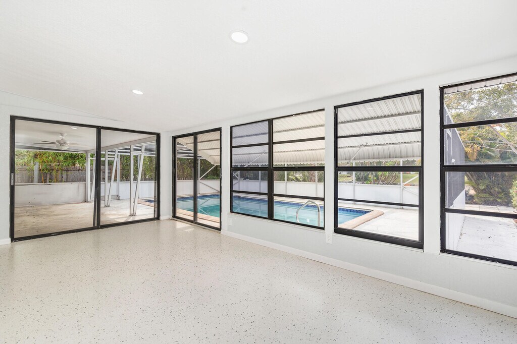 Amazing deal on a waterfront pool home available for lease in SoSo! This 2 bedroom, 2 bath home is light and bright with an open living area and gleaming terrazzo floors throughout for easy maintenance. The clean design kitchen is updated with white cabinetry, quartz countertops and brand new Samsung stainless steel appliances including a dishwasher, an electric range, a built in microwave oven and a French Door refrigerator with ice maker. The primary suite has a wall of closets and an ensuite master with glass enclosed shower and new vanity. The second bedroom is by the hall bath that is updated with a combination tub/shower and new vanity. The Florida Room has a bank of windows overlooking the pool and backyard and sliders to the screened patio - perfect for entertaining.