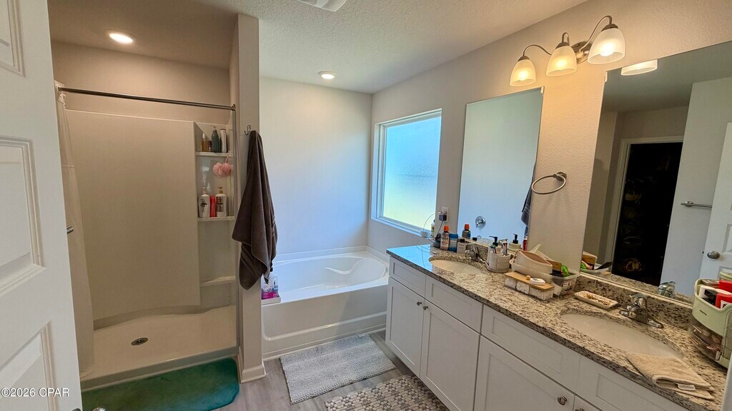 Discover this 4-bedroom, 2-bath home in Panama City's Park Place subdivision. The main living areas feature wood LVP flooring while the bedrooms are carpeted for added comfort. The primary bath offers a soaker tub, separate shower and a double sink vanity. A dedicated laundry room adds convenience. Community amenities include a playground and a public pool. This property combines practical design and neighborhood amenities for comfortable everyday living.