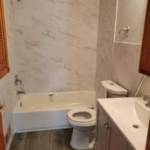 Freshly painted 4 bedroom, 1 bath single family situated on tree lined street. Hardwood floors on lower level, nice Kit, LR w/picture window, Enclosed front porch. Unfinished walk out basement with W/D. Extra-long driveway. Deck off Kit to serene back yard. Small pet on basis only. Easy access to all major roadways and BUS to NYC