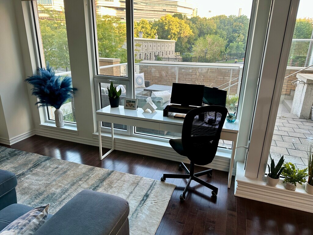 This 1-bed, 1-bath condo comes fully furnished, well decorated and includes essential amenities such as air conditioning, a dishwasher, and in-unit washer/dryer. Residents have access to a fitness center, a pool, and bike paths are at your doorstep enhancing the living experience. The building features an elevator and maintains a smoke-free environment. The living room provides ample space for relaxation, while the bedroom provides a comfortable bed with spacious bedside tables. The kitchen has everything you may need, from a Ninja Creami, blender, air fryer and more! The bathroom includes a well-sized bath tub in a relaxing setting. The exterior of the property is well-maintained, contributing to an inviting atmosphere.