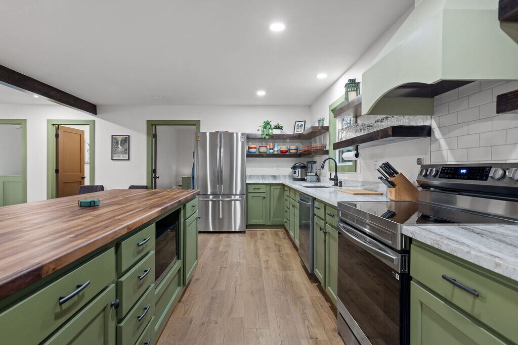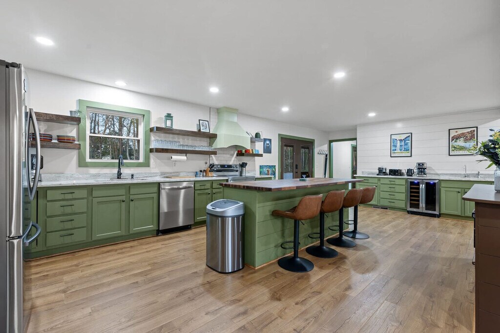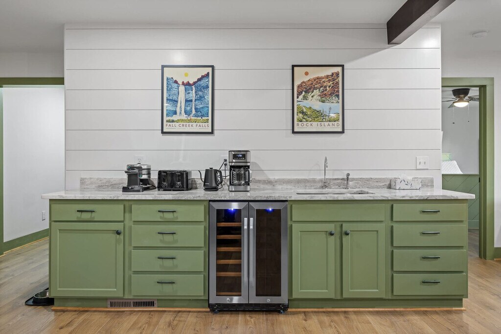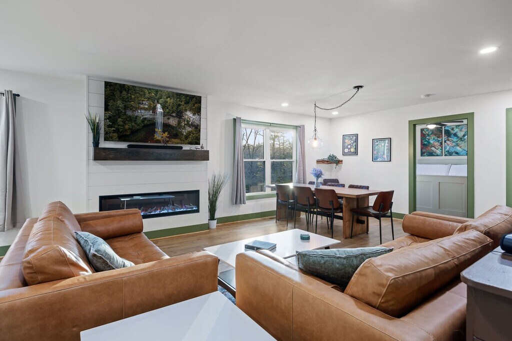 Feel at home in Hemlock Haven, a newly remodeled 5-bedroom home set in the stunning countryside near Fall Creek Falls. This home features a spacious open floor plan perfect for quality time. This home offers a saltwater hot tub, fire pit, smart TVs, reliable Wi-Fi, a washer and dryer, custom-built furniture, specially crafted designs, a coffee and waffle bar, and a bonus room with shuffleboard, ping pong, and an arcade table. The kitchen includes a dining area, coffee/waffle bar, and living room. Dog and cat beds and food bowls are provided. Electric Vehicle Charging is available at an additional cost; please reach out for more details. The charger is a Type 2 CCS, and Teslas will need an adapter (not provided). This is also RV compatible. Tucked away in the gorgeous countryside of Pikeville, TN, this home is only an 8-minute drive to Fall Creek Falls State Park. Enjoy gorgeous scenery and winding backroads on your way to the property. There are neighbors, but there is a wooded area and a fence to provide privacy. Fall Creek Falls State Park is 3.3 miles away, Rock Island State Park is 30 miles away, Burgess Falls State Park is 34 miles away, Foster Falls is 61 miles away, and Ruby Falls is 75 miles away. Grocery stores and restaurants in the area are scarce, so stock up before you come in and stay a while! Guests must be 18 or older to book. Event fees apply; please ask for more information. [SI]