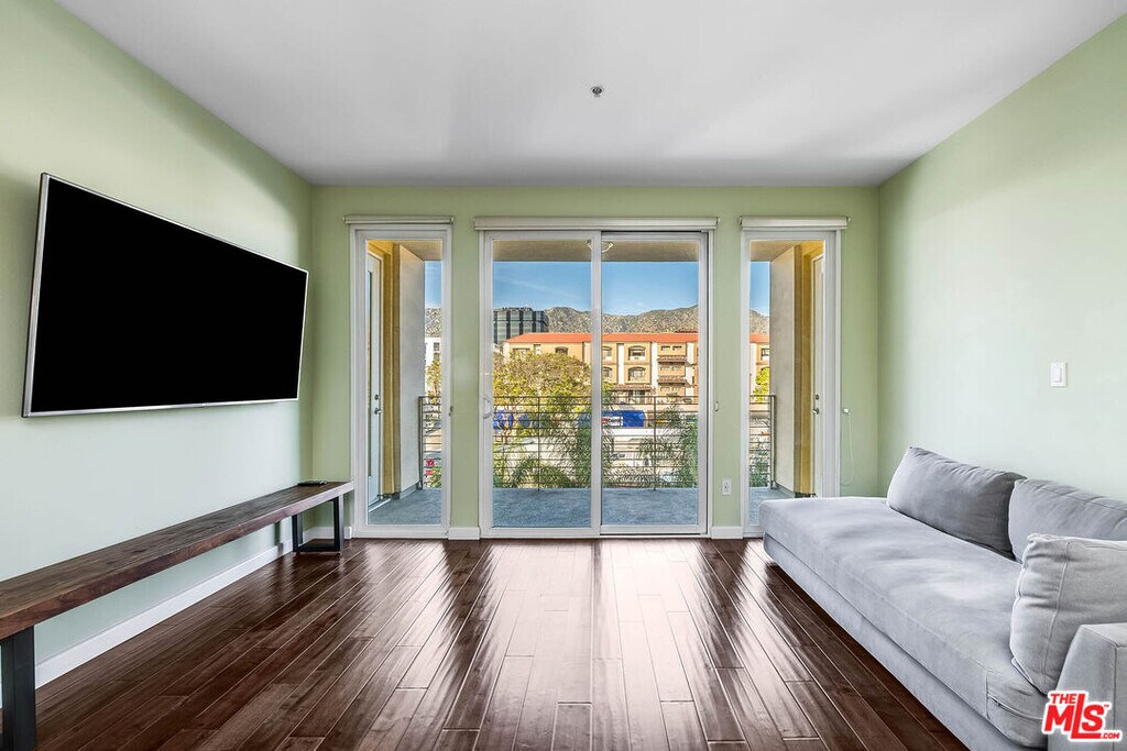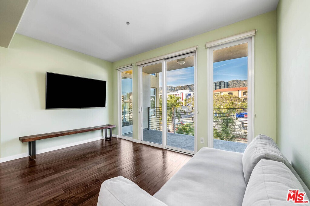 Step inside and feel instantly at ease in this beautifully updated, move-in-ready condo located in the sought-after Burbank Collection in the heart of downtown Burbank. Filled with natural light, the open-concept layout features rich hardwood floors with cork underlayment for added comfort and sound insulation. The living and dining areas flow seamlessly, highlighted by a statement chandelier, perfect for both everyday living and easy entertaining. The kitchen offers granite countertops, quality appliances, and ample cabinetry, blending style and functionality. Two spacious bedrooms are paired with updated bathrooms, including a guest bath with a tile shower/tub combo and a serene primary suite with a frameless walk-in shower and soaking tub. Enjoy a private balcony with rare views of the Burbank hills, an ideal spot to relax. Additional features include newer HVAC, water softening system, in-unit washer/dryer, and two side-by-side parking spaces with storage. Offered semi-furnished with select pieces, this home provides added convenience. Community amenities include a pool, fitness center, putting green, lounge, and landscaped courtyards. Enjoy a prime location just moments from Burbank Town Center, popular dining, and entertainment including the AMC Theater offering a seamless blend of comfort, convenience, and elevated living. MLS ID 26815039