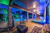 On an oversized acre, this private estate offers a secluded tropical paradise with a heated saltwater pool, jacuzzi, and tiki hut. The home features kitchens and a game room and a night club. It has six bedrooms, including a master and a junior master. there is plenty of parking space. This home is perfect for differnt events. Rent price is based in a 12 month lease buit Short term rental is available.