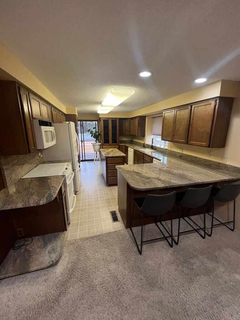 Looking for a unit where you have plenty of space to host dinner parties? If so, you need to rent this very spacious 2 bedroom 1 1/4 bathroom home on Sunrise Drive. The kitchen has granite counters, lots of cabinet space, dishwasher, garbage compactor, side by side refrigerator and stove. There is also a breakfast bar. The dining area has plenty of room for a table for 10, it also has cabinet space. The living room features a gas fireplace and floor to ceiling windows. The laundry room is equipped with a washer and dryer. Utilities included in the rent are: garbage and internet. You will be responsible for 1/2 of the Avista bill as well as 1/2 of the water/sewer bill. Pull into the circular drive and into a shared garage. No yard work, no snow removal, it is all included! 1 cat is permitted with a pet deposit. Call to schedule your showing. Take a 3D tour here ->