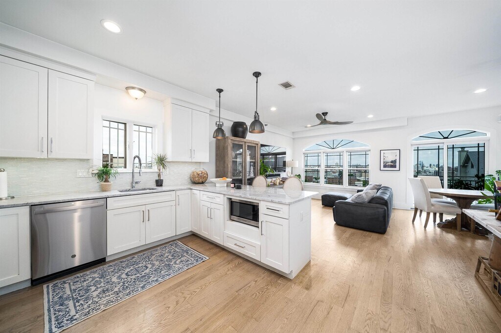 Stunning NYC Skyline Views - Modern 3BR/2BA Condo with Private Rooftop Terrace Experience unparalleled luxury and breathtaking views in this top-floor condo nestled in the sought-after Jersey City Heights neighborhood. This three-bedroom, two-bathroom residence is designed for sophisticated living, featuring rich hardwood floors, central air conditioning, and recessed lighting throughout. A gourmet chef's kitchen is the heart of the home, boasting high-end Bosch stainless steel appliances, gleaming Carrera marble countertops, and a stylish eat-in breakfast bar. The custom finishes extend to the modern, elegantly appointed bathrooms, creating a spa-like feel. Beyond the pristine interiors, the apartment offers a private 15x15-foot rooftop terrace, providing a secluded oasis for outdoor entertaining and relaxation. From this elevated perch, residents can enjoy direct, unobstructed views of the spectacular Manhattan skyline. With convenient access to NYC transportation and the vibrant local scene, this home offers the perfect blend of luxury, privacy, and urban convenience. Pets Welcome with rules.