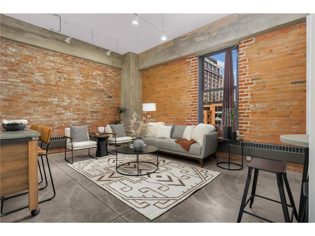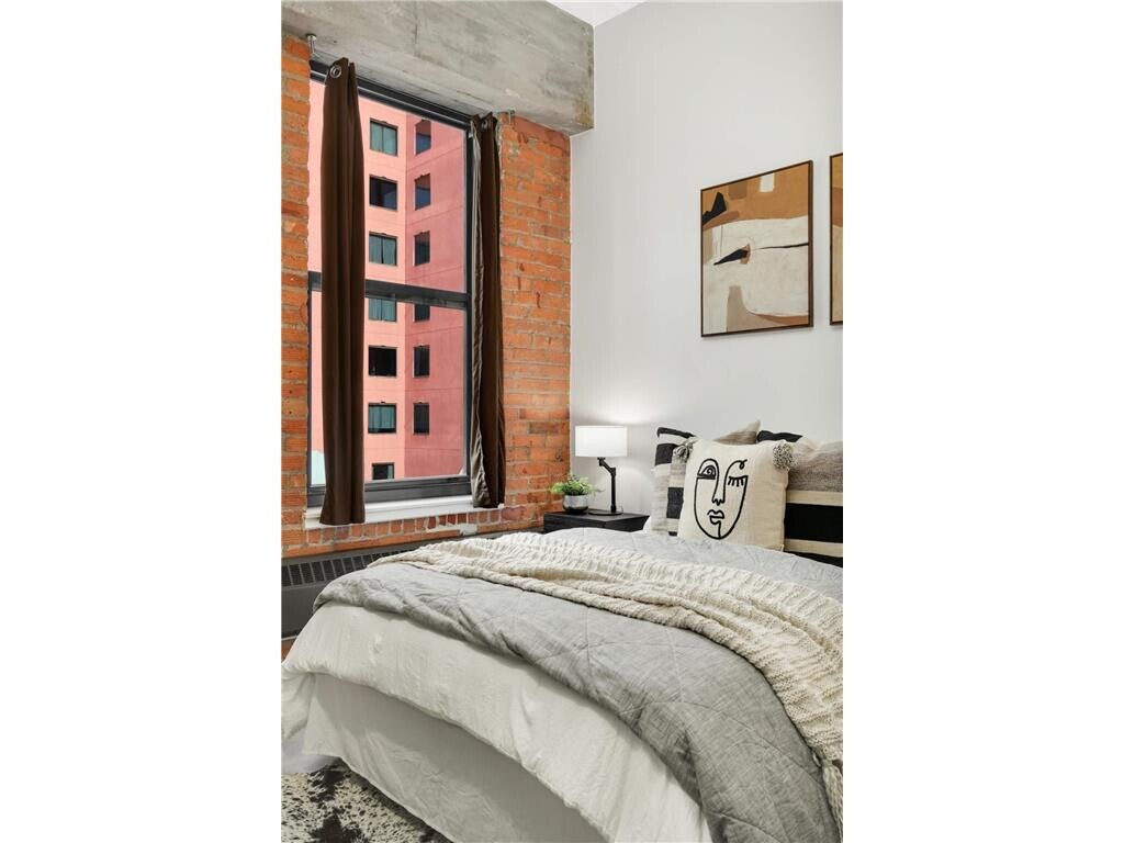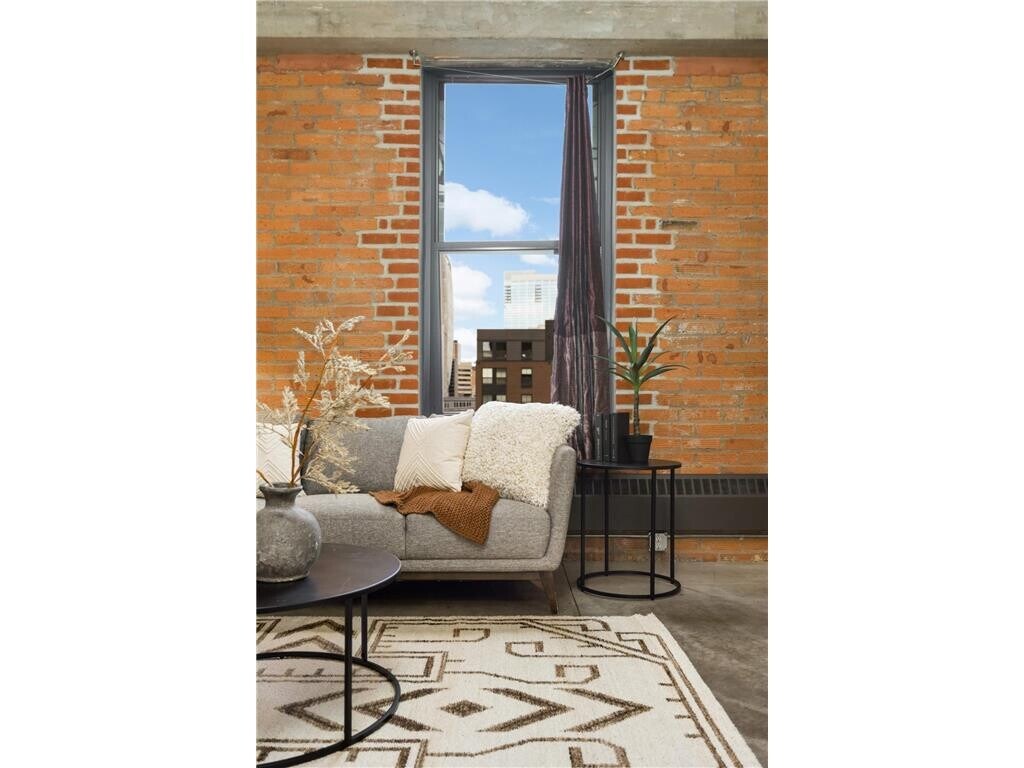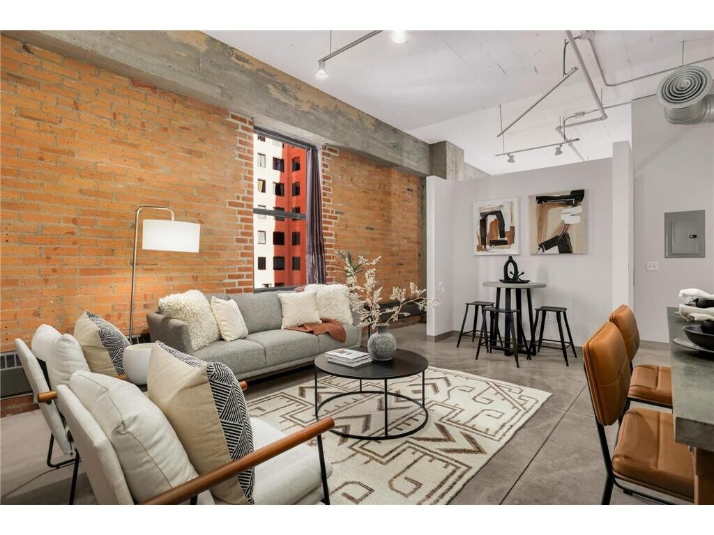 Experience authentic loft living at American Trio Lofts in downtown Minneapolis! This 1 bedroom unit boasts a spacious open-concept layout, highlighted by dramatic 12-foot ceilings, durable concrete floors, modern finishes & fixtures, and charming brick walls that add warmth and character. The 827 sq ft floor plan features a welcoming foyer, a versatile layout to fit your lifestyle and a half wall that subtly divides the bedroom from the living space for enhanced privacy and comfort. Enjoy a workout in the updated fitness room or soak in the scene from the community rooftop deck that offers breathtaking views of the cityscape. Enjoy quick and convenient access to Trader Joe's for everyday essentials and an array of top-notch restaurants, world-class theater and entertainment venues, and scenic biking & walking trails. Rent includes everything except electricity, including 24 hour on-demand valet parking at no additional cost. Don't miss this opportunity to kickstart your new downtown lifestyle!