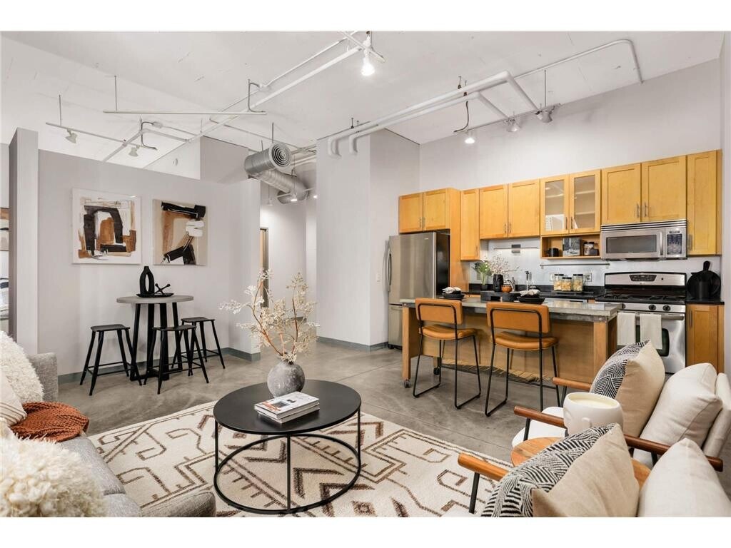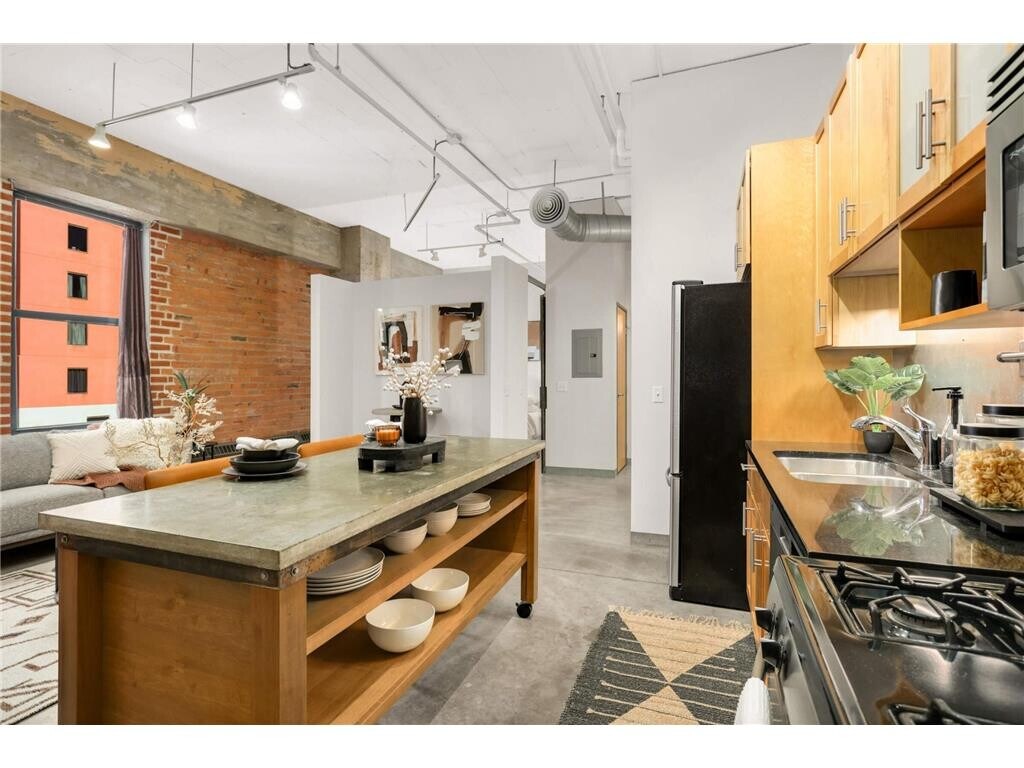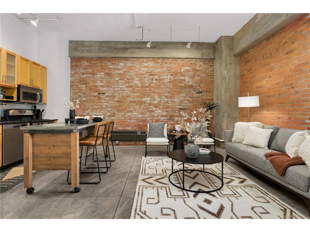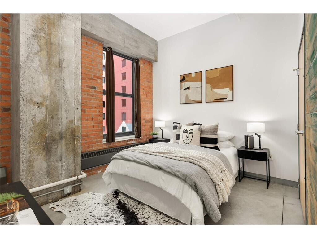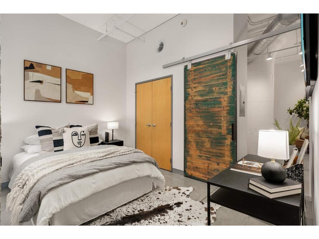 Experience authentic loft living at American Trio Lofts in downtown Minneapolis! This 1 bedroom unit boasts a spacious open-concept layout, highlighted by dramatic 12-foot ceilings, durable concrete floors, modern finishes & fixtures, and charming brick walls that add warmth and character. The 827 sq ft floor plan features a welcoming foyer, a versatile layout to fit your lifestyle and a half wall that subtly divides the bedroom from the living space for enhanced privacy and comfort. Enjoy a workout in the updated fitness room or soak in the scene from the community rooftop deck that offers breathtaking views of the cityscape. Enjoy quick and convenient access to Trader Joe's for everyday essentials and an array of top-notch restaurants, world-class theater and entertainment venues, and scenic biking & walking trails. Rent includes everything except electricity, including 24 hour on-demand valet parking at no additional cost. Don't miss this opportunity to kickstart your new downtown lifestyle!