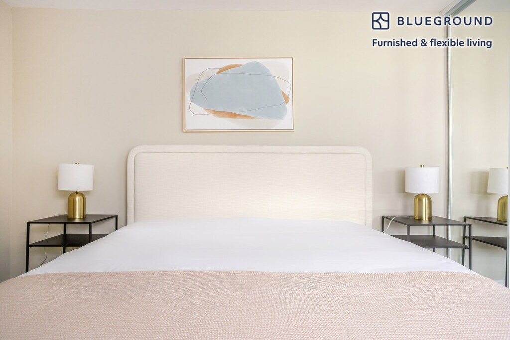 Discover the best of Burbank, with this two bedroom apartment in Burbank. It’ll be easy to simply show up and start living in this furnished apartment with its fully equipped kitchen, living room, and our dedicated, on-the-ground support. (ID #LAX1381) The advertised rate of $3,870/month is the lowest available price, based on a 11 month(s) and 29 day(s) stay with a move-in date of February 9, 2026. Rates vary depending on the duration of stay, season, and other parameters. For exact pricing and additional pricing components, please visit our website and enter your desired move-in and move-out dates. The rate is applicable when billed upfront; it can be higher if billed in multiple payments. Brokers are welcome to reach out. Were you looking for an unfurnished lease? Try Blueground instead and upgrade from unfurnished to furnished living: - Furnished at rates comparable to unfurnished - No setup or furniture costs - save thousands - Move-in ready - save time, just bring your suitcase Designed with you in mind As with any Blueground apartment, you’ll find a thoughtfully designed space complete with beautiful furniture and a fully equipped kitchen in this two bedroom property. And, thanks to our superior quality mattresses, luxury linens, and towels, you can relax knowing you’ll always feel comfortably at home. When you’re ready for some fun, you can take in the Burbank vibes or bring the entertainment to you with the premium wireless speaker or smart TV. This apartment also offers in-apartment laundry. Sleeping arrangements King Bed, 70.8in/180cm King Bed, 70.8in/180cm Amenities Building amenities unique to this two bedroom apartment include an on-site: - BBQ Area - Dryer - Elevator - Swimming pool - Washing machine - Parking - Pets allowed Arrival and ongoing support The entire apartment is yours to enjoy! Throughout your stay, you’ll have access to our Client Experience team through the Blueground App. You can schedule additional cleanings, submit maintenance requests, and view our neighborhood recommendations with just a few taps. We’ll share all details upon confirmation of your stay. Ideally Located This furnished apartment is located in Burbank, a thriving city at the southeastern end of Los Angeles's Fernando Valley. This chic community located 12 miles northwest of Downtown LA has a spirit all its own. Burbank is the headquarters of both the Walt Disney and Warner Brothers studios, so creativity is a given here. Cool bars and cafes line West Burbank Boulevard, and the neighborhood is also home to one of LA's oddest attractions: the Bearded Lady's Mystic Museum. The diverse dining scene includes everything from American comfort food to Japanese to Thai. Anyone who loves to cook can fill up their grocery cart at Ralphs or Trader Joe's right in the area. Another local gem is the Urban Press Winery, which regularly hosts events and tastings on its lovely patio. While Burbank has its own train station, most residents rely on cars to get around. Other things to note Building amenities may have an extra cost. This Blueground apartment has flexible lease options, allowing you to book it for one month, a year, or more. Pets are welcome, though weight limits and breed restrictions apply and may incur fees. Parking is offered based on availability and is subject to a fee. We take great pride in ensuring every photo displayed is shot in our own units with our actual furnishings. That said, we regularly refresh our decor and furniture arrangement, which may differ from what’s pictured. [SI]