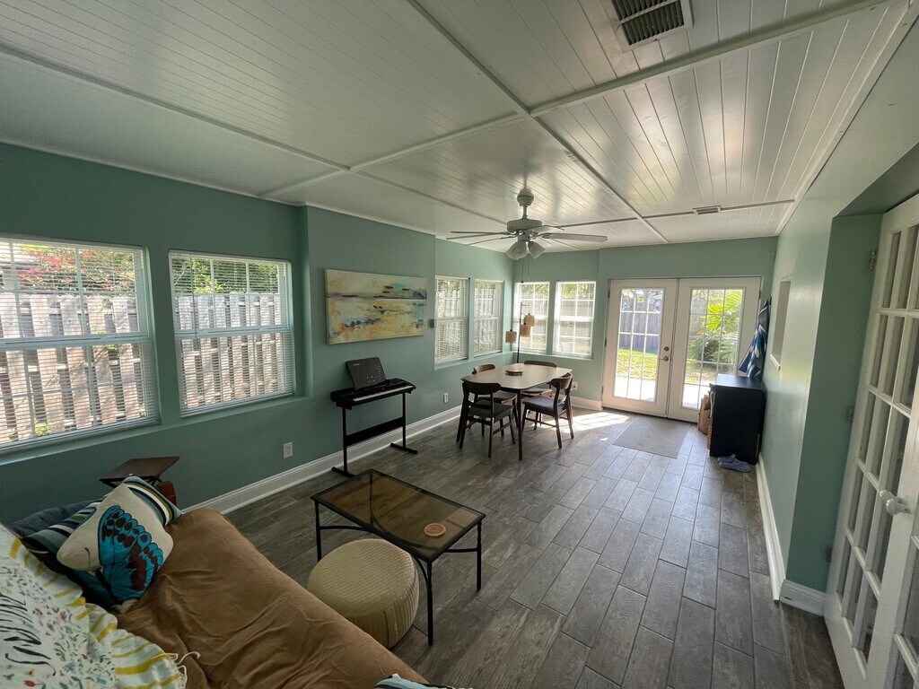 3BR Home Near St. Augustine Beach – Fenced Yard, Bonus Florida Room & Pet Friendly ($500 off first months rent if leased by May 1st!). Enjoy comfortable coastal living in this bright and airy 3-bed/2-bath single-family home located in a highly desirable area just minutes from St. Augustine Beach. This well-maintained home features brand new tile flooring throughout, brand new counter tops and kitchen sink, and has been freshly painted, offering a clean, move-in ready space. The layout includes a spacious, heated and cooled Florida room, perfect for a second living area, home office, or flex space. The large laundry room comes equipped with a washer and dryer and offers ample storage. There are also cozy front and back patios, ideal for relaxing. The primary suite features two closets and a private bathroom with a walk-in shower. The home also includes a fully fenced yard, providing privacy and space to enjoy the outdoors.