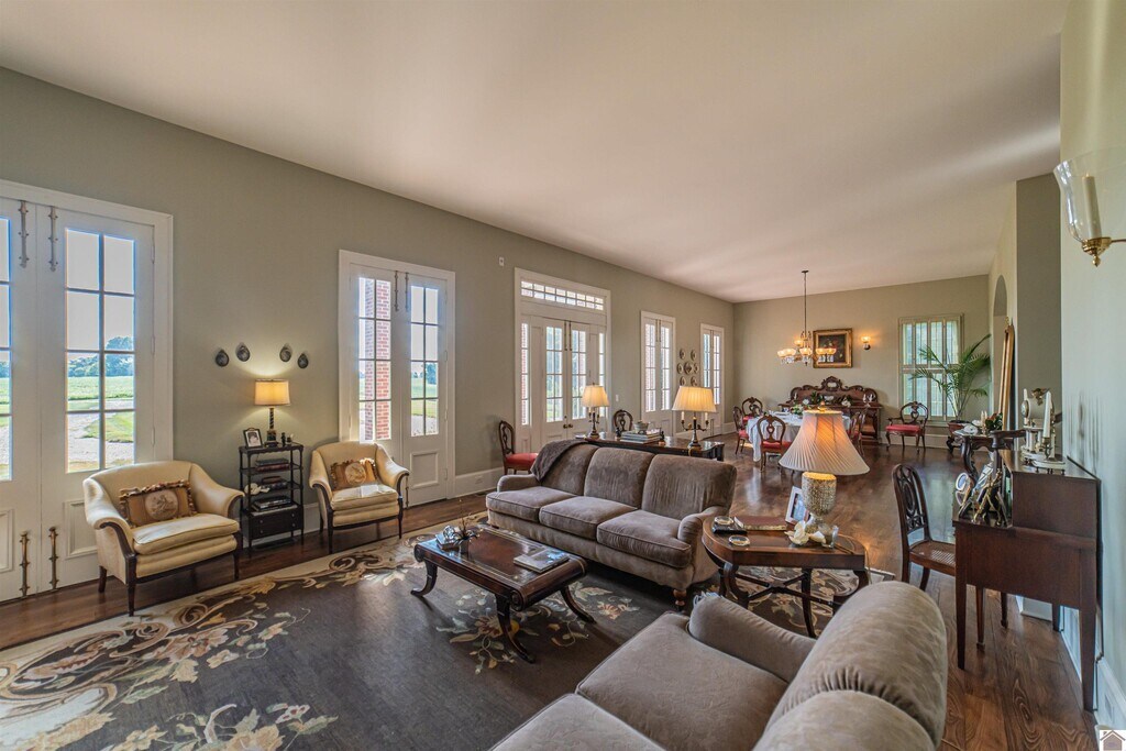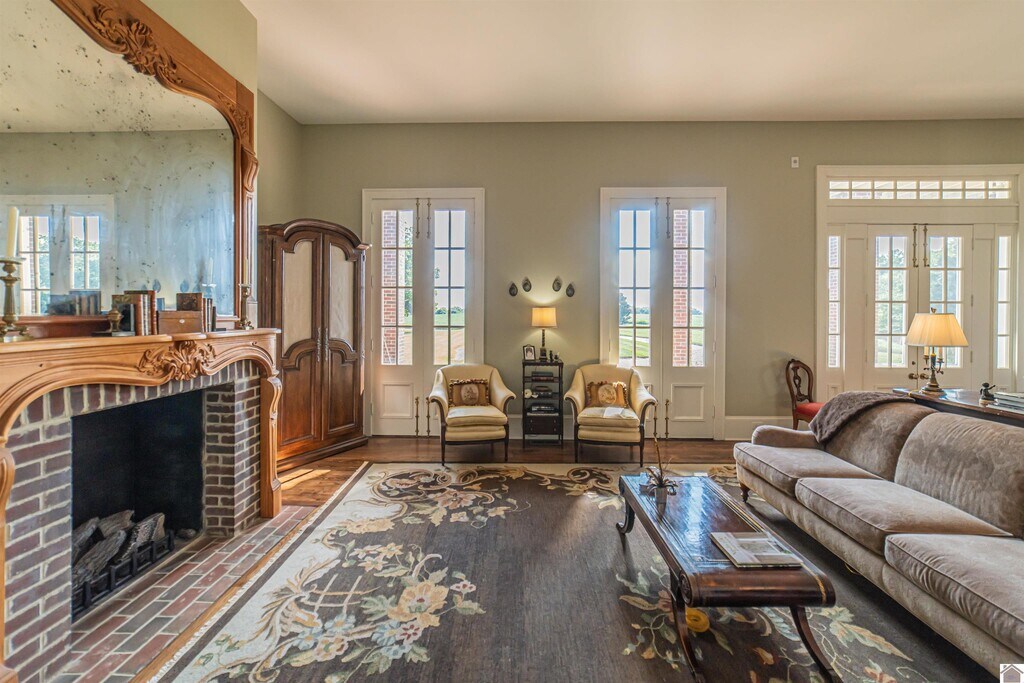 A rare gem nestled on 18 picturesque & secluded acres on one of the highest points in the county! This custom-built home draws inspiration from the elegant Philbrick home in Biloxi, MS, offering a unique blend of classic architecture and Southern charm! The driveway winds through lush, wooded landscape and past the beautiful horse barn before this stunner presents itself! Adorned with 16 custom-built mahogany doors, natural light abounds while framing the stunning vistas. Custom New Orleans Bevolo gas lanterns illuminate the doorways, adding the most perfect touch! The expansive outdoor living spaces are perfect for entertaining and relaxing amidst nature. Inside, the home boasts 10-12 ft ceilings throughout, gorgeous hardwoods and high end carpet in the bedrooms. Custom cabinetry/hardware, beautiful primary suite and each bedroom with its own en-suite bath. Living room features custom French fireplace mantle and gas logs creating a cozy atmosphere. Available for rent starting Jan 2026