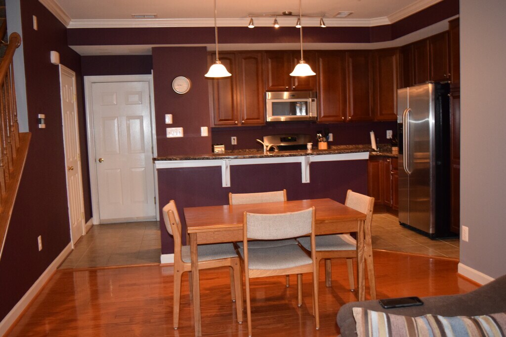 Beautiful lower end unit, two story, condominium home with an attached one-car garage in a sought-after gated community. Includes use of indoor/outdoor pool and fitness center. The lower level features an open floor plan dining/living room, kitchen and powder room with hardwood floors and tile. Gas stove with griddle, granite countertops, and upgraded cabinets. The top level has carpet and includes 2 bedrooms, 2 full bathrooms, large family room with a balcony and a laundry room with a washer and dryer. The large primary bedroom has 2 walk-in closets. There is a double sink granite vanity and a large, 2-head shower in the primary bathroom. Water is included. The Stonebridge Town Center is walking distance away and features Wegmans, Apple, Starbucks, DSW, REI and numerous other stores and restaurants, banking and dry-cleaning services. Potomac Mills Mall, IKEA, COSTCO and Potomac Hospital are about 5 - 10 minutes away. Easy access Interstate 95, VRE and a short distance from Quantico and Ft. Belvoir. Walking distance to Neabsco-Potomac Commuter Garage, right next to Potomac Town Center and Sentara Hospital with 1,400 spaces, EV chargers, and OmniRide bus stops. $400 Move-Out Fee- $300 Non-Refundable Pet Fee