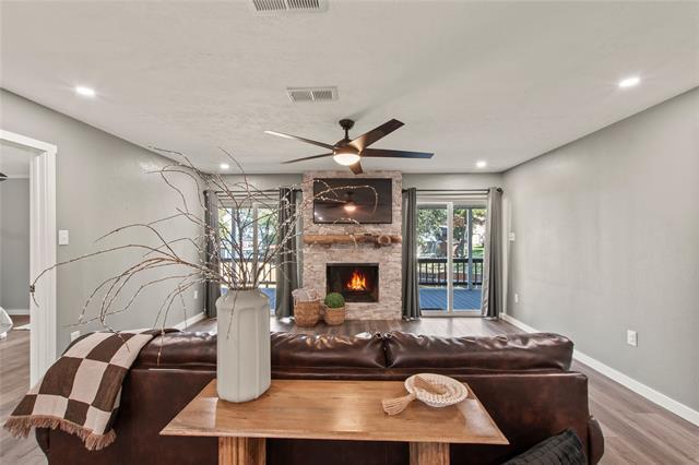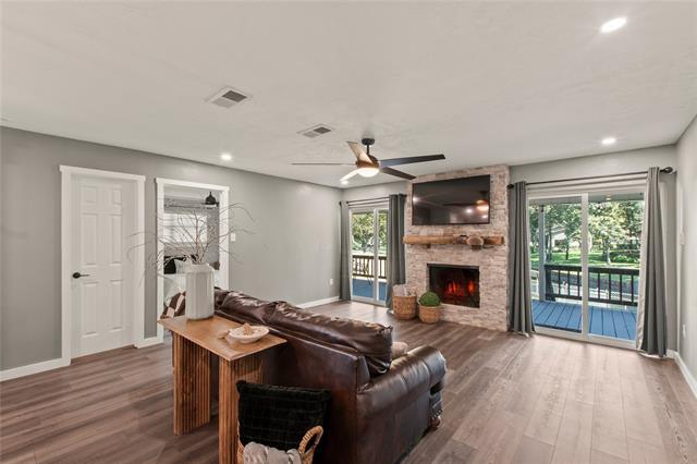 Charming and quaint lake house located in Wildwood Acres at Cedar Creek Lake. Two waterside bedrooms and en-suite bathrooms with patio access. Open concept living with wood burning fire place, dine in seating at the kitchen island making this gem fabulous for entertaining guests at the lake. Updates include granite countertops, luxury vinyl plank floors, soft-close drawers and all new appliances and modern tile style floors in bathrooms. Covered back patio with a rustic porch swing great for enjoying a morning coffee or a late night glass of wine will soaking in the lake view. Storage building off side of home ideal for storing lake toys. Lake access provided by walk down ramp with sitting area great for fishing and enjoying the lake life! Also for sale!