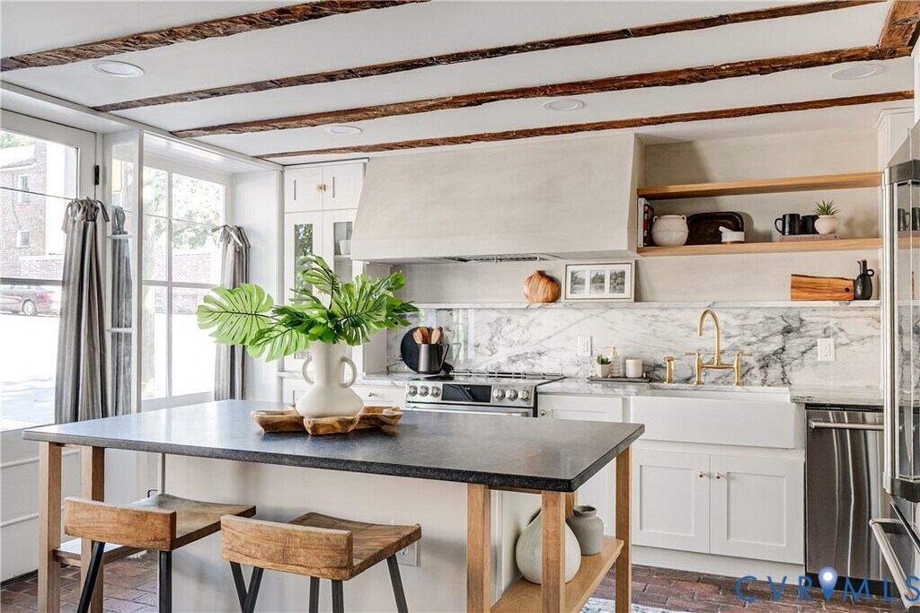 Here???s your chance to call one of the most charming and historic buildings in Richmond home: the circa 1809 John Adams Double House. Located directly across the street from the national landmark St. John???s Church,this light-filled structure sits on a corner lot in one of the most desirable sections of Church Hill. All four levels have been carefully updated and restored,with particular attention given to the original historic features. The gorgeous eat-in kitchen awaits downstairs in the walkout English basement. Flooded with light from the Victorian storefront this is one of the most unique entertaining spaces you???ll find in a home. The well crafted and functional kitchen has contrasting marble and granite countertops,SS Cafe appliances,custom range hood,oak shelving and brass hardware. Directly off of the dining area is a serene walled garden with brick and bluestone patios that enable an indoor/outdoor lifestyle that???s hard to find in the city. The equally serene primary suite can be found on the top level,with hand-hewn wood beams and generous closet space. Marble floors,a beautiful deep green shower and brass fixtures combine to create a stunning en-suite bathroom,but the real stunner is the seasonal view of the James River from the window. On the second level,you???ll find a lovely bedroom with decorative fireplace,a spacious library or home office with a wood-burning fireplace and built-ins,and a full bath with marble floors and shower tile,custom wallpaper,and brass fixtures. In the heart of all of the charming parks,historic architecture and dining Church Hill has to offer. Single family use only. Credit & background checks,min. credit score 650,solid rental history + income verification. $50 application fee per applicant over the age of 18. Pets considered on a case-by-case basis,additional monthly fees and non-refundable upfront fees apply. Renters insurance required. All other utilities and snow removal are the responsibility of the tenant.