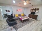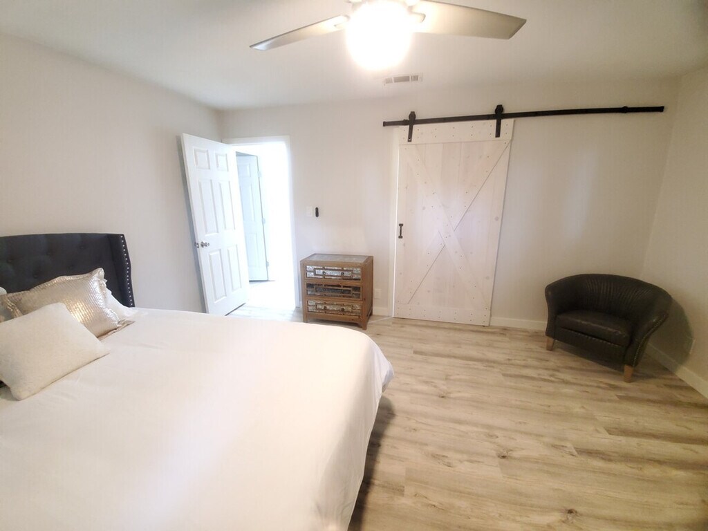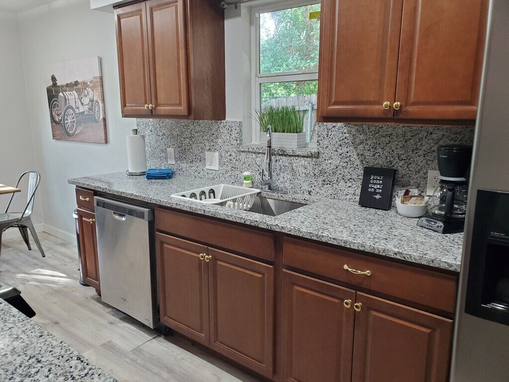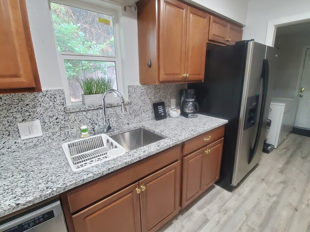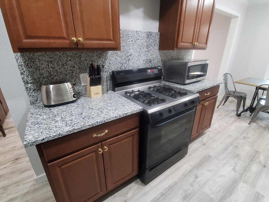 The advertised rate of $3,483/month is the lowest available price, based on a 30 day(s) stay with a move-in date of July 11, 2026. Rates vary depending on the duration of stay, season, and other parameters. For exact pricing and additional pricing components, please visit our website and enter your desired move-in and move-out dates. The rate is applicable when billed upfront; it can be higher if billed in multiple payments. Feel at home in this spacious 1300 sqft home, featuring 3 bedrooms and 2 full bathrooms. This Urban-Air retreat is close to vibrant downtown Austin. This home features open spaces with oversized rooms for work or play, a full kitchen, and a large backyard. The fully stocked kitchen, laundry, and baths add convenience. Relax on the plush sofa and enjoy your favorite shows. Step onto the balcony for your morning coffee, or unwind in the large private yard on the tree swing under the giant heritage tree. Onsite parking is available for 2-3 cars, with 2 of the spots covered. Located in a hot area of central Austin, this home is situated in the sweet spot between Austin Bergstrom Airport and the downtown corridor. Walk to the local skate park and jogging trials, as well as a convenience store and many eateries just one block away. Downtown Austin, 6th street bar district, Rainey St district, Zilker Park, and SoCo (South Congress) are all minutes away. The fireplace is not accessible without prior approval by the owners. Guests must remove all trash and personal items from the premises prior to vacating. Guests will not park any vehicles in the other tenants' designated spaces. Guests must maintain the home in a clean condition during the entire visit and notify staff of any issues that may arise during the stay. Each room features workstations for computers, providing ample cozy space to do daily tasks. A city bus stop is located immediately in front of the home. Uber, Lyft, and other rideshares are available in minutes. [SI]
