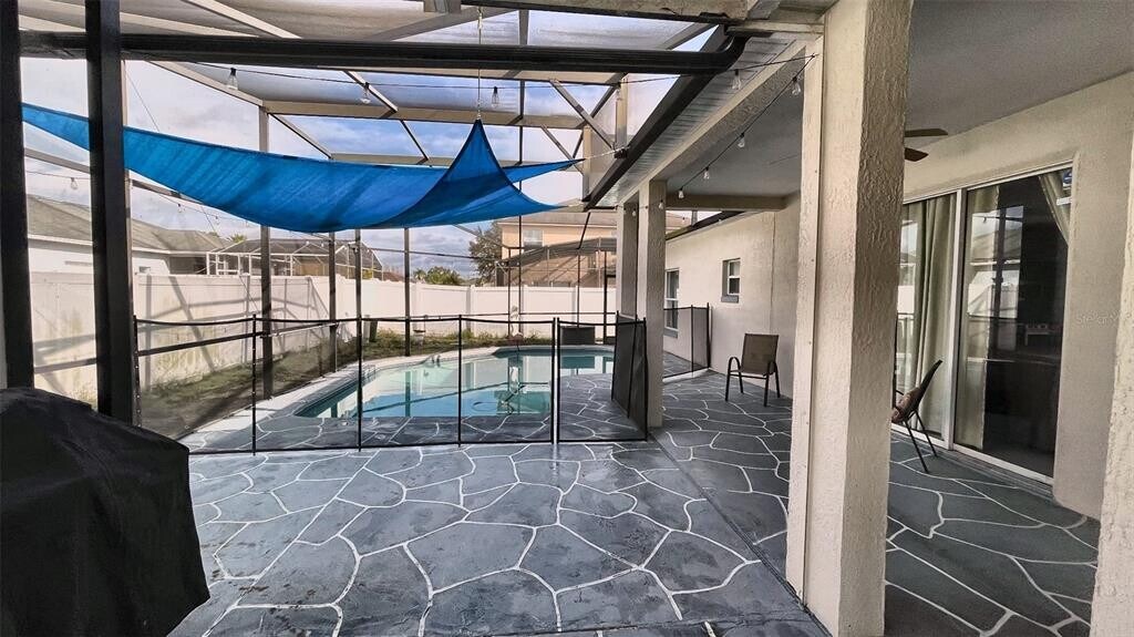 Resort-style Florida living in Crescent Lakes! Welcome to this spacious 4-bedroom,2-bath single-family home featuring a private screened pool and an oversized covered lanai—perfect for relaxing or entertaining. Enjoy a bright,open layout with generous living areas,tile flooring,and a split-bedroom floor plan for added privacy. The kitchen is functional and well-positioned to stay connected with the main living space—ideal for everyday living. A comfortable primary suite,indoor laundry,and a 2-car garage complete the home. Conveniently located near shopping,dining,and major roads with easy access to Central Florida attractions. Home may be rented furnished with the existing items at no additional cost,or items can be removed upon tenant’s request. Pool maintenance is included and provided by the owner. Pets considered with breed restrictions. Schedule your private showing today! MLS# O6376927