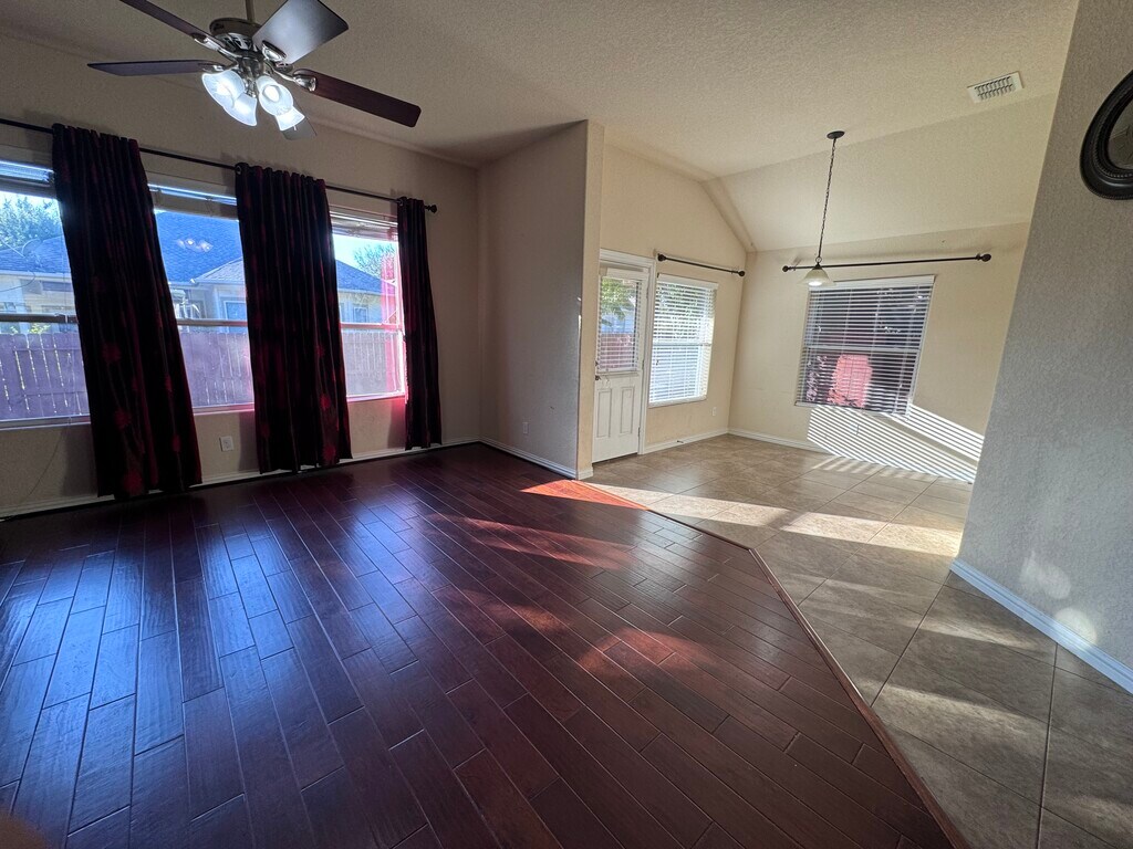 Welcome to this charming single story 3-bedroom, 2-bath home with open floor plan that blends comfort, functionality and style. Inside, you'll find a warm and open layout with a hard wood and stone flooring. The spacious living areas flow effortlessly into a spacious kitchen equipped with everything you need gas stove, microwave, refrigerator, dishwasher with beautiful granite and a convenient pantry for extra storage. The primary suite is a spacious peaceful retreat featuring a double vanity, walk-in shower, relaxing garden tub and generous walk-in closet. Additional highlights include washer and dryer hookups, a water softener, and programmable thermostat. There are two additional rooms that can be a formal living and dedicated office space. The backyard has matured fruit trees, a patio perfect for relaxing or entertaining and a full privacy fence. The two-car garage with door opener offers both storage and convenience with nice epoxy flooring. Located in a welcoming gated community, residents can take advantage of great amenities including walking and jogging trails, a basketball court, playground, picnic and barbecue areas and a nice swimming pool and easy access to nearby shopping HEB and Walmart. Aue elementary is just a 2 min walk and is rated one of the best elementary schools. Part of This home offers the perfect balance of comfort, convenience and charm!! Newly painted and ready for a new renter. Looking for a spacious place to live in one of the best school districts in San Antonio/Boerne area, look no further.