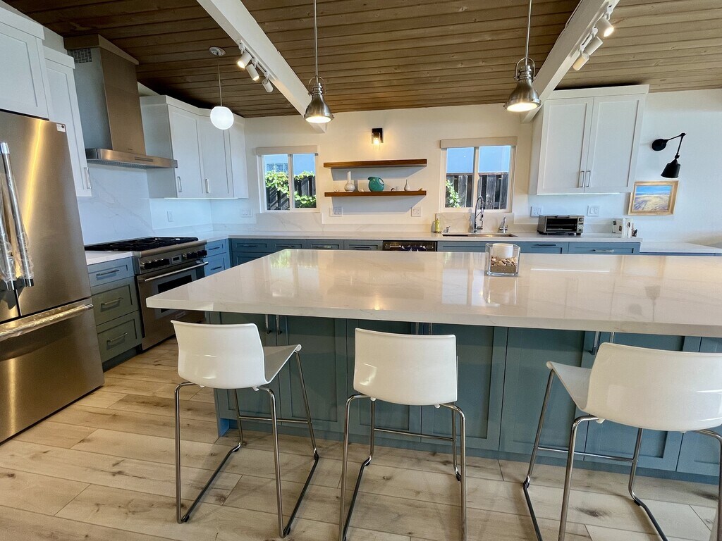 Stunning Newly Remodeled Ocean View Retreat – Coastal Luxury Awaits Completely remodeled in 2025, this modern sanctuary blends sleek design with relaxed beach living, offering the perfect location in North Pacific Beach close to La Jolla border. Enjoy the amazing, ever changing views of Mission Bay, overlooking Pacific Beach and Ocean Views to the west. While preparing a meal in your new kitchen, you can enjoy the easy view out the wall of windows. Every part of the home has been done with the owner planning to live here long term. Top of the line finishes and high end Thermador refrigerator, range, and dishwasher. Key Features: Open-Concept Living – Bright, airy layout with vaulted ceilings, wide-plank flooring, and walls of windows that flood the home with natural light. Chef's Kitchen – Brand-new gourmet kitchen featuring quartz countertops, stainless steel appliances, a massive center island, and a barstool setup perfect for casual gatherings or sunset cocktails. Spacious Bedrooms – 3 bedrooms, including a luxurious primary suite, spa-like en-suite bath, dual vanities, walk-in shower, and views out of the sliding glass door. 2 additional bedrooms all with vaulted ceiling. Outdoor Oasis – Redesigned back yard with patio and easy maintenance turf that will stay green all year long. The Space This light-filled, newly remodeled home captures the essence of coastal California living. Fresh neutral tones, high-end finishes, and thoughtful touches create a sophisticated yet welcoming atmosphere. Whether you're lounging in the sunlit living room with the ocean breeze drifting in or hosting dinners with panoramic sunset backdrops, every moment feels elevated. 2 car garage parking with 2 car driveway. Washer/Dryer in garage Utilities: Tenant responsible for all utilities Pets: No pets Terms: 1 year Lease Application Fee $45 per adult Must have gross income of 2.5 times the rent, good credit, and good rental history to qualify. Deposit: 1.5x rent Professionally managed by Jason Haar, CA DRE License #02032480. Interested? Call today to schedule a viewing!