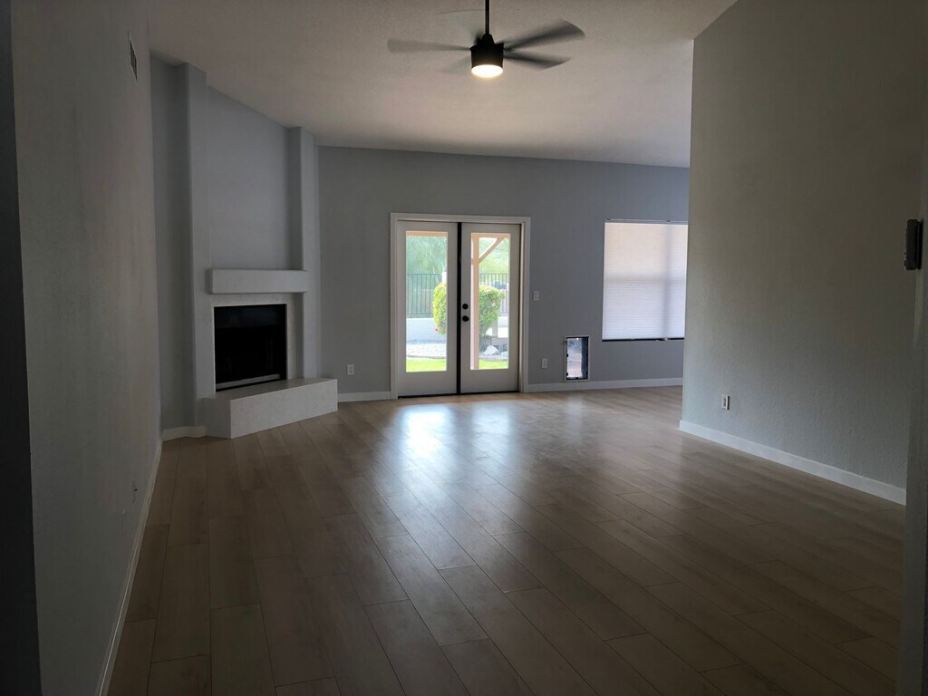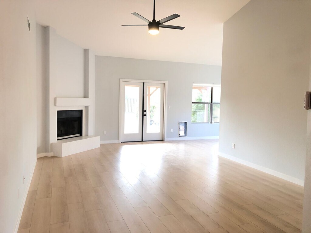 UNFURNISHED SHORT-TERM RENTAL ONLY, LEASE MUST END 3-31-26. Mountain Park Ranch. Beautiful white shaker cabinetry & upgraded Quartz countertops with subway tile backsplash. Italian marble shower & bath. Wood laminate flooring throughout. Great room floorplan, fireplace, ceiling fans, new large closets, private backyard, view fence, one neighbor, mountain views, close to hiking, community pool/spa & tennis Courts.