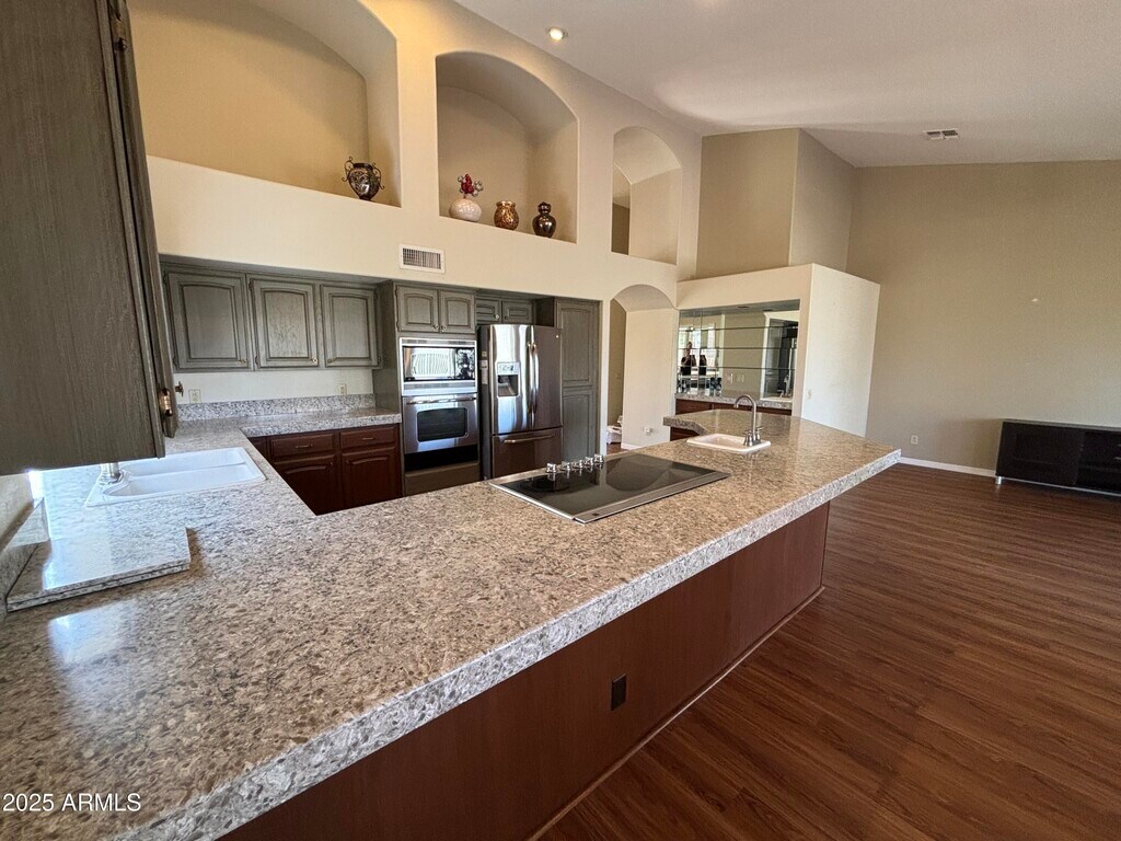 Golf Course lot - Enjoy resort-style living in this beautiful,spacious home located right on the green in the gated community of Sun Lakes. This elegant property features: A large formal living room with a cozy fireplace A separate formal dining room perfect for entertaining A generous kitchen with golf course views The extra-large master suite offers a peaceful retreat,complete with a huge walk-in closet,separate soaking tub,and walk-in shower. The guest bedroom and bath are privately situated off a wide hallway that includes an extra storage closet and a large laundry room for added convenience. Experience the comfort and lifestyle of Sun Lakeswhether you're relaxing indoors or enjoying the view of the fairway right from your backyard.
