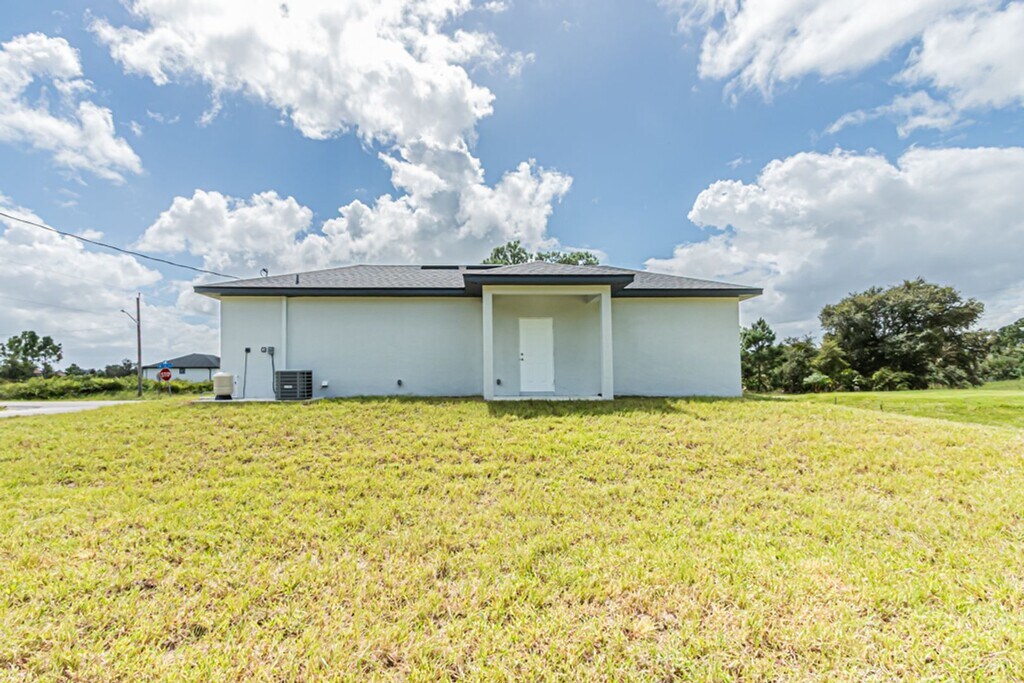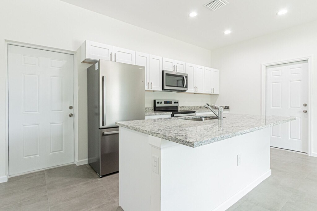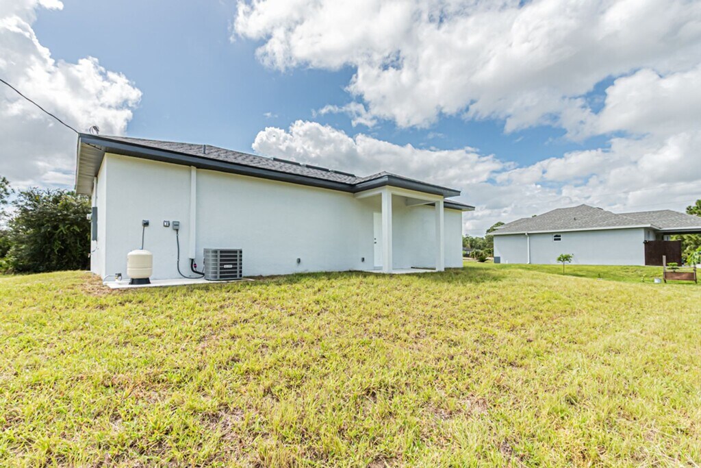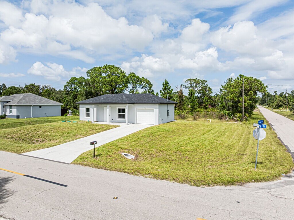 Welcome to a Brand New Custom 1/1/1- in SW LEHIGH ACRES, a stunning new construction nestled in the best SW location of Lehigh Acres, FL. This cozy cottage offers a private setting with a large quarter acre lot and a spacious backyard. The home is move-in ready, featuring a modern design with all-tile floors throughout, stainless steel appliances, granite counters, and wood shaker cabinets. The kitchen is a chef's dream with a convenient island and plenty of natural lighting. The home also includes an inside laundry with washer and dryer hook-up. The front open porch and covered rear lanai provide ample outdoor living space. With modern lighting and fixtures, this one-bedroom, one-bath home with a one-car garage is a perfect blend of style and comfort. Don't miss this opportunity to be the first to call this beautiful house your home. See it today! (photos could vary ,for advertisement purposes)
