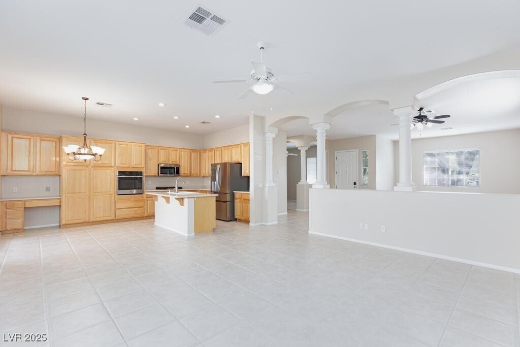 Fall in love with the warmth and charm of this stunning single-story home in Sunridge! Designed with comfort and style in mind, this home features an open and flowing layout that’s perfect for entertaining or relaxing with family. A bright and versatile den offers endless possibilities, whether you use it as a home office, playroom, or cozy reading nook. The spacious primary suite includes a spa-style bathroom with a relaxing soaking tub and separate shower. The kitchen is a delight with a breakfast bar, solid-surface countertops, and tile flooring, while the bedrooms offer plush carpeting and ceiling fans throughout. Enjoy outdoor living in the beautifully landscaped backyard complete with a covered patio and built-in BBQ, perfect for weekend gatherings or quiet evenings under the stars.
