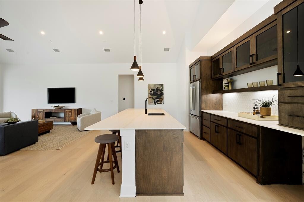 Ready to level up your lifestyle? This modern masterpiece in Barton Hills brings sleek design, serious space, and nature vibes all in one epic rental. Tucked away on a quiet cul-de-sac with direct access to the Barton Creek Greenbelt, it’s like your own private escape—right in the middle of everything. With over 4,300 square feet, this home flexes 4 bedrooms, 5 bathrooms, a sun-soaked study, and a spacious game room with a second kitchen (hello, entertaining!). Massive sliding glass doors, floor-to-ceiling windows, and luxe designer finishes keep the whole place glowing with natural light and style. Love to cook? You’ll go wild for the Thermador appliances, quartz counters, oversized island, custom cabinetry, Ruvati sink, and hidden walk-in butler’s pantry with a second fridge. Hosting is easy with seamless indoor-outdoor flow—step outside to the built-in outdoor kitchen, cozy fireplace, and private yard. Downstairs, the dreamy primary suite has a spa-like bath (double shower, soaking tub, massive closet... yes, please!). Upstairs, each bedroom has its own walk-in closet, and the treetop balcony is made for sunset hangs with hill country views. Built by Hayes Builders, this eco-chic home is LEED certified, super energy efficient, and designed for clean, healthy living. There’s even a two-year heating & cooling guarantee—because comfort matters. Garage is oversized. Air is fresh. Vibes are immaculate. Now available for lease—come snag your spot in one of Austin’s best neighborhoods. Also available for sale! MLS ID 2103033