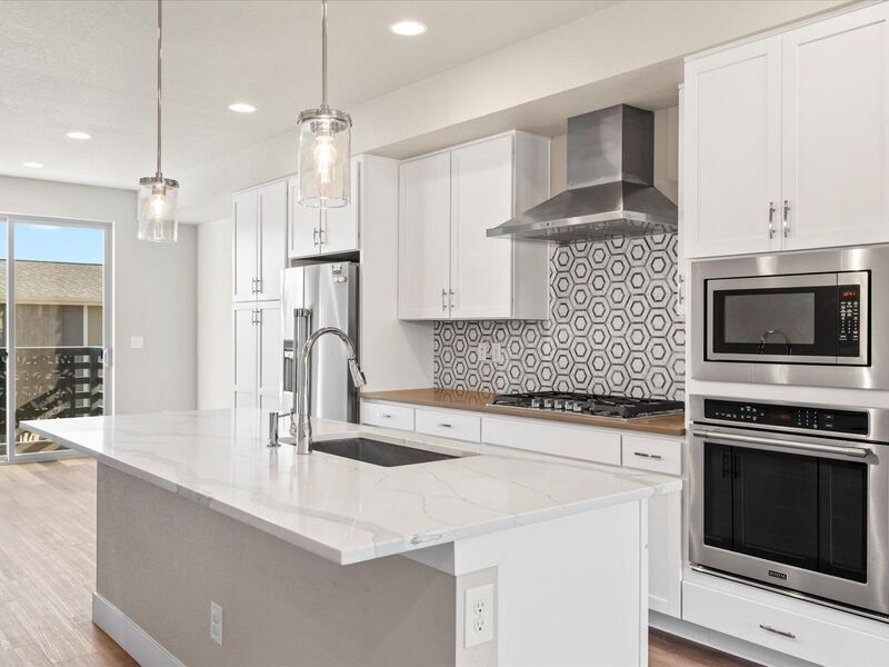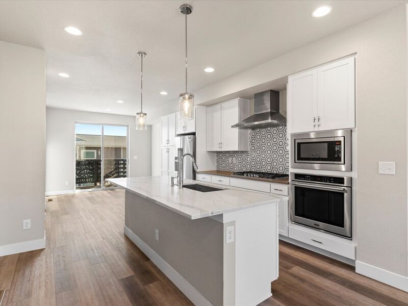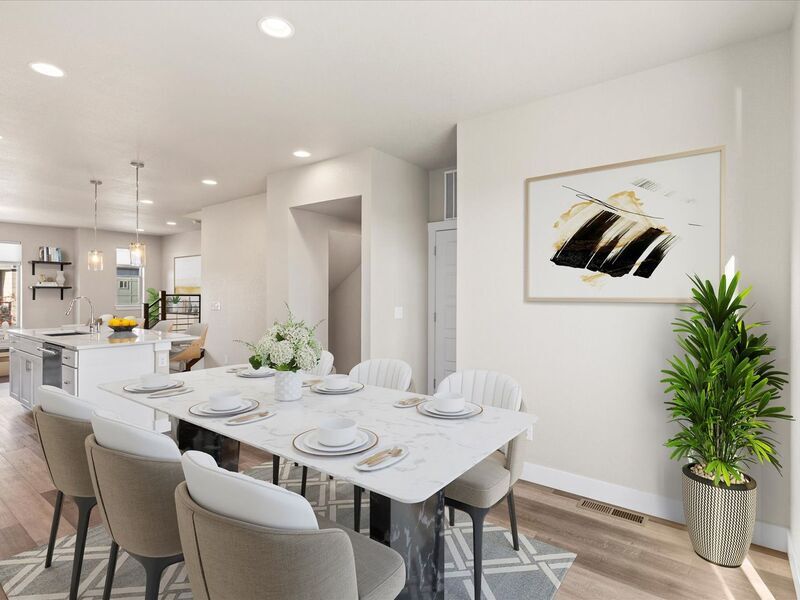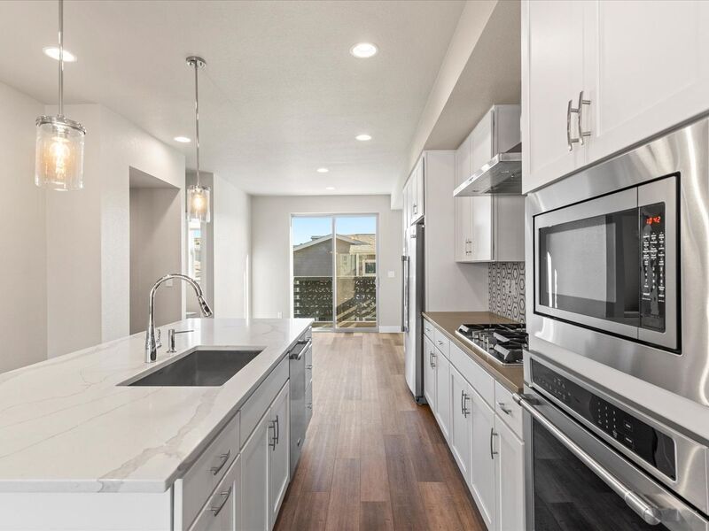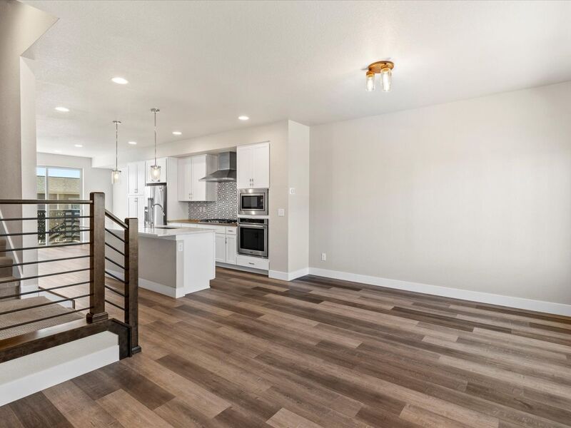 Available now, this contemporary 3-story town home offers breathtaking mountain and city views from a stunning rooftop deck! With 2 bedrooms, 2.5 bathrooms, and 1,550 square feet of thoughtfully designed living space, this home is sure to impress. As soon as you step inside, you'll notice the clean, modern lines and luxurious finishes that create a sleek and stylish atmosphere. The open floor plan allows for effortless flow between rooms, perfect for hosting gatherings with friends and family. One of the highlights of this home is the chef's kitchen, complete with stainless steel appliances, quartz counters and an expansive island that doubles as a prep area and breakfast bar. The great room is the heart of the home, with plenty of space for comfortable seating and entertaining. The adjacent dining room is perfect for hosting dinner parties or enjoying a quiet meal at home. But the real showstopper is the rooftop deck, where you can take in panoramic views of the mountains and city skyline. This is the ideal spot for enjoying your morning coffee, watching the sunset, or hosting a barbecue with friends. When it's time to retire for the night, head to the second floor where you'll find the primary suite which boasts luxurious en suite bathroom with dual sinks, an oversized walk-in shower and spacious walk-in closet. There is also a secondary bedroom with its own private en suite full bath. Additional features of this home include an oversized two car tandem garage, ample storage space, balcony off the main living level and laundry on the second level. Located in close proximity to the Stanley Marketplace, Eastbridge Town Center, restaurants, parks, trails, and open space, this home offers the perfect blend of urban living and outdoor recreation. Pets allowed with pet screening and pet rent. Tenant responsible for flat rate utility fee which includes water, trash/recycle and sewer.