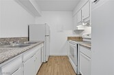 Open concept living area with tile flooring, neutral toned paint, and modern white cabinetry in the kitchen. Full size refrigerator and stove in kitchen. Lots of natural light! 2 spacious Bedrooms, 1 Upgraded Bathroom with Stunning Tile in Shower, plus New Vanity! WELCOME HOME! Utilities: - Water, sewer, trash, and technology fee included in rent - Tenants responsible for power Pets: - 1 small dog under 20lbs ok - $350 fee per pet due upon securing - $50 Monthly pet rent