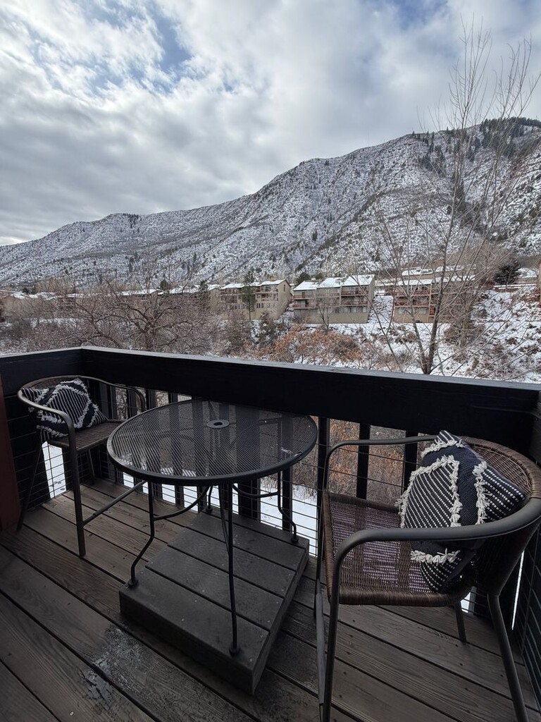 Furnished 2 bedroom, 1.5 bathroom ground-level condo on the Roaring Fork River. Enjoy relaxing river views from the deck and the soothing sound of the water right outside your door. Single-level living with in-unit washer & dryer, easy bike path access, and a great in-town location close to the bus stop, shopping, and dining.