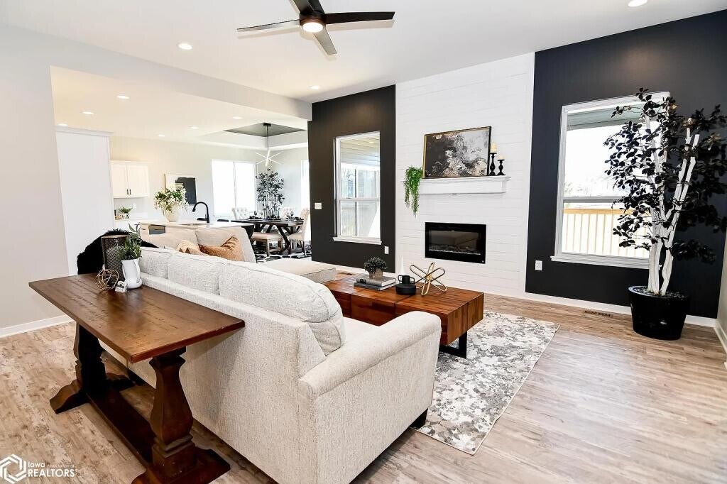 Discover modern living at 2505 N. Terrace Drive in Webster City, Iowa, crafted by Ridge Development, LLC. This immaculate ranch boasts nearly 1600 sq ft of luxury living, featuring 3 bedrooms and 2 baths. Entertain in style within the expansive open floor plan, highlighted by soaring ceilings and an electric log fireplace with a matching stone front, seamlessly blending with the exterior facade. The gourmet kitchen beckons with hard surface countertops, a sizable island complete with sink and dishwasher. Step through sliding glass doors from the dining area onto the expansive covered patio. Primary bedroom with raised ceilings and 3/4 bath with large walk-in shower and walk-in closet. Spare bedrooms on other side of the home with full bath between. The full unfinished basement offers endless potential with multiple egress windows, ideal for creating a personalized family room or additional bedrooms. Outside, the yard awaits professional seeding and landscaping prior to closing. Don't miss this incredible opportunity for brand new construction in Webster City! Note: Interior photos are from a different property with the same floorplan in another market built by Ridge Development and professionally stage.
