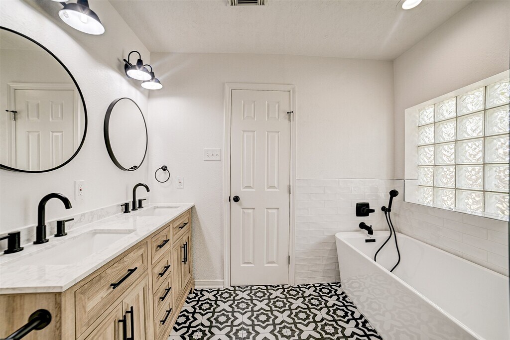 Welcome to this beautifully updated 3-bedroom,2-bathroom home located in the charming Tiffany Park neighborhood of Texas City,Texas. This home seamlessly blends modern amenities with farmhouse-inspired details,creating a warm and inviting atmosphere. As you step inside,you’ll be greeted by the stunning living room featuring vaulted ceilings and a cozy gas fireplace wrapped in shiplap with a reclaimed wood mantel,perfect for those cool Texas evenings. The open-concept kitchen is a chef’s delight,boasting shaker-style cabinetry,quartz countertops,and a stylish black and white patterned tile backsplash. The primary suite is a serene retreat,offering a spacious bedroom,a luxurious soaking tub,a separate shower,and a walk-in closet. The additional bedrooms are generously sized,providing ample space for family or guests.With its farmhouse charm and modern updates,this Tiffany Park gem is ready to welcome you home. MLS# 76381863