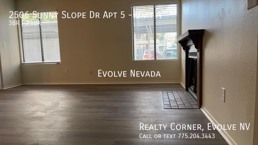 Bright, updated 3-bedroom, 2.5-bathroom two-story condo in Sparks, offering 1,200 square feet of comfortable living. Freshly painted with new vinyl plank flooring throughout the main level and plush carpeting upstairs, this home is move-in ready. The open living room and dining area feature a cozy fireplace, perfect for gatherings. The kitchen comes equipped with a stove/oven, refrigerator, and dishwasher for easy meal prep. The master bedroom includes a walk-in closet. A washer and dryer are included for convenience. Home has a private patio providing outdoor enjoyment. A detached two-car garage adds valuable parking and storage space. Located close to schools, shopping, and restaurants, this condo combines location, updates, and low-maintenance living in one appealing package. Text or call us at for more info! 12-month lease. Total monthly charges of $2,220.10 includes rent of $2,095.00 sewer of $41.98, trash of $33.17 and Resident Benefits Package of $49.95. Tenants are responsible for electric, gas and water. Deposit, rent and any additional fees are due upon move-in. Deposit starts at the rental amount but could vary depending on application criteria. All leases include a tenant benefit package. The following benefits are provided: 24/7 rent payment portal access with multiple payment options, 24/7 maintenance hotline access, credit score boost, along with renters & liability insurance. The tenant benefit package is required for all leases and is billed at $29.95 a month. Deposit, rent and any additional fees are due upon move in. Deposit starts at the rental amount but could vary depending on application criteria. Pets may be allowed upon completion of a pet application, pending pet screening and owner approval. The Pet Application Fee is $75. Once approved there is a one-time $400 pet administration fee for the first pet and $200 for the second pet along with a $25 per month pet administration fee. Pet screening profiles from are required for all animals. Please be advised there has been fraudulent activity in this area and on rental websites. Any contact being made to you will only be from an Evolve NV representative. We do not ask for nor accept any deposit or rent payment until an application has been submitted. Please feel free to contact us if you believe you have been contacted by an unauthorized individual. Managed by Evolve Nevada, a division of Realty Corner. Nevada Broker #B.143842