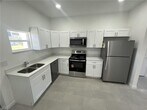 Welcome to your dream home in Lehigh Acres, FL! This brand new 2-bedroom, 1-bathroom home is ready for you to move in and start making memories. The home boasts a private setting with a large backyard, perfect for outdoor activities or simply enjoying the Florida sunshine. The eat-in kitchen is a chef's dream with granite counters, wood shaker cabinets, and beautiful tile flooring throughout. The home is pet-friendly and comes with a washer and dryer hook-up for your convenience. The property also features storm protection-impact windows for added safety. Enjoy your morning coffee on the open front porch or relax in the evening on the covered rear lanai. This cozy cottage is one of the lowest priced new construction homes in the area, making it a great value. Don't miss out on the opportunity to be the first to call this home. See it today!