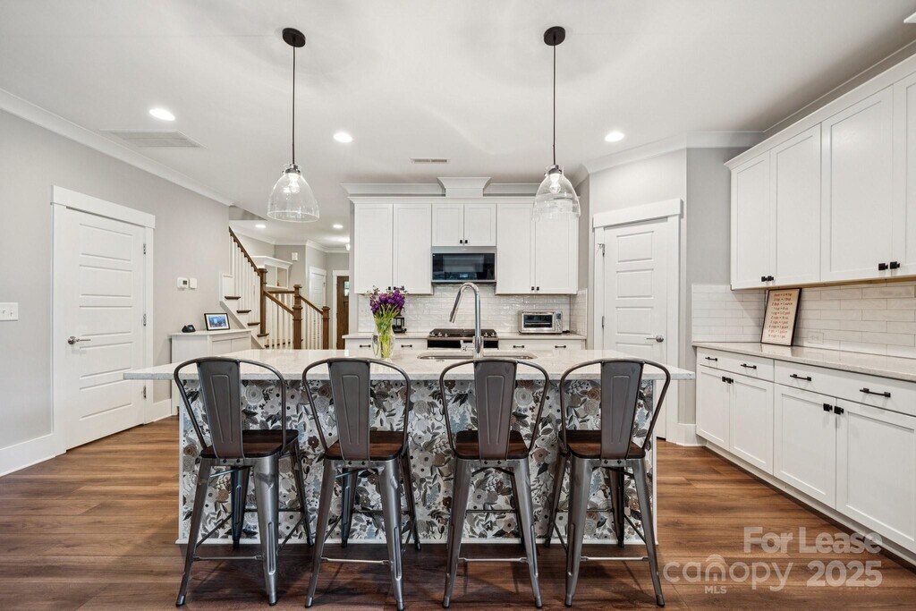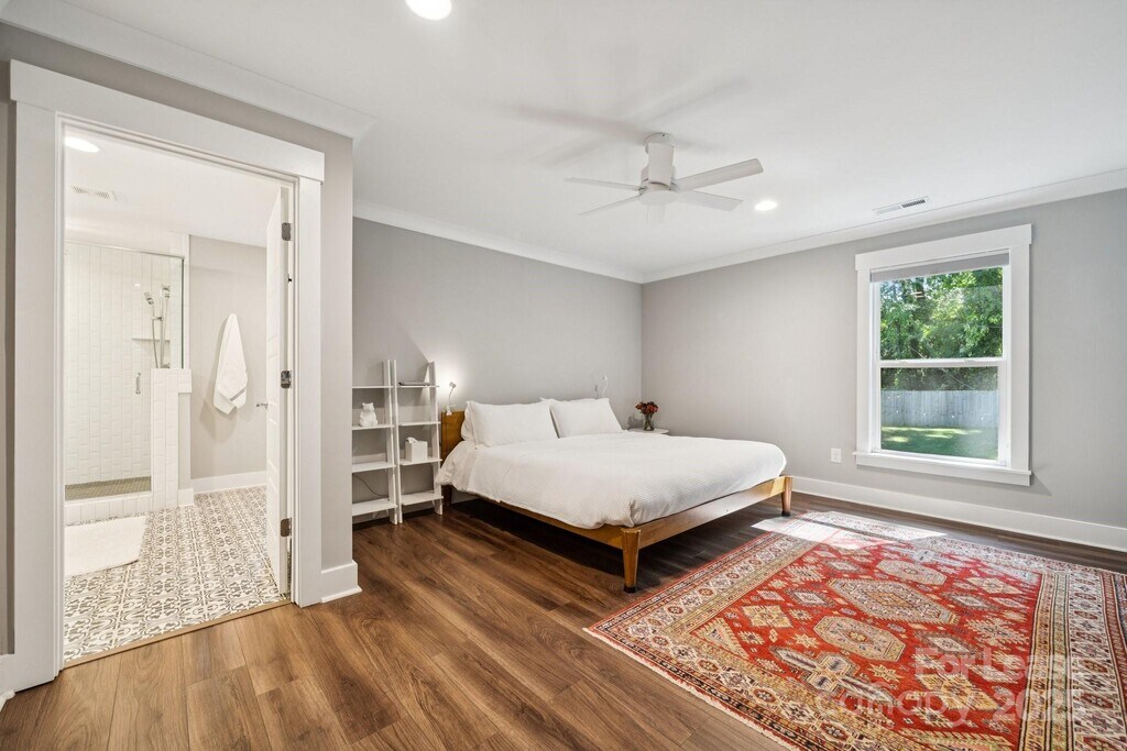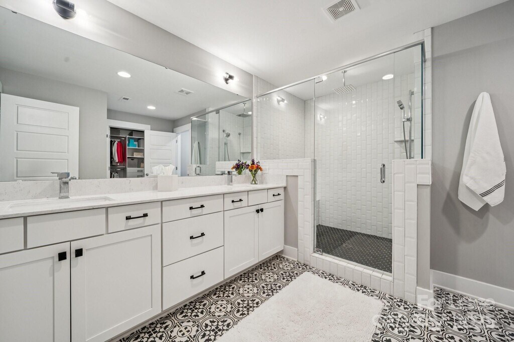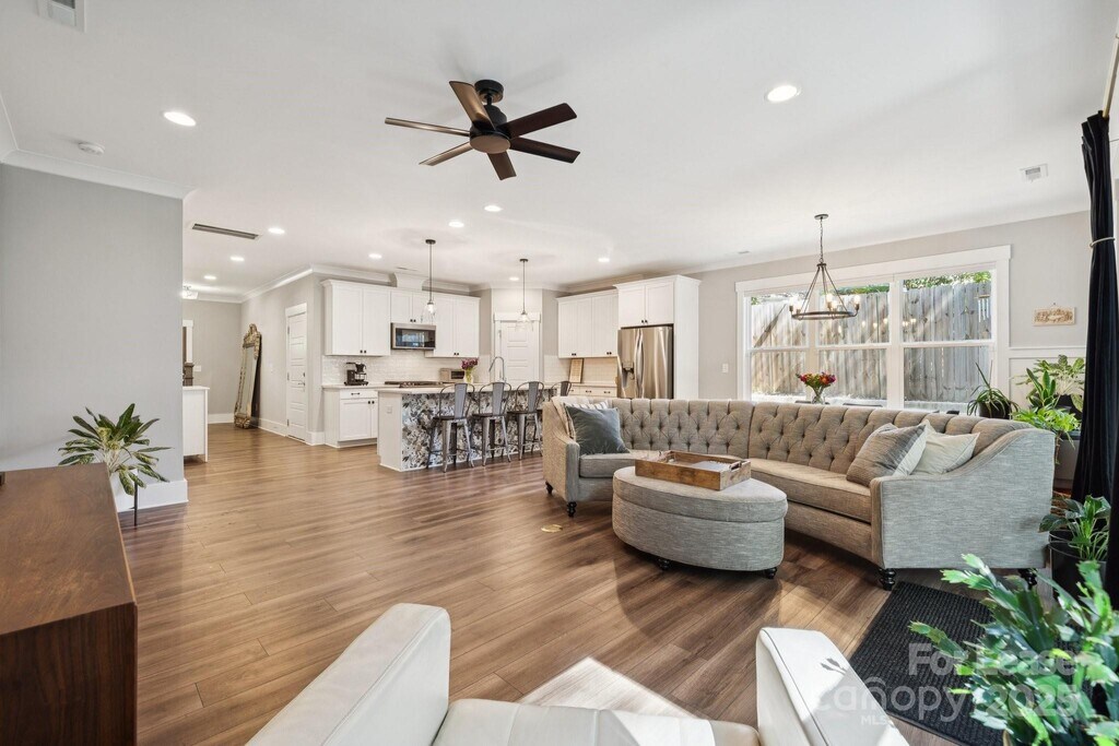 Welcome home to this like-new duet in Camp Greene — a modern,high-end residence designed for comfort,convenience,and city living in one of Charlotte’s fastest-growing neighborhoods. Step inside to an open-concept floor plan with beautiful LVP flooring and quality finishes throughout. The kitchen impresses with a large island,quartz countertops,pantry,and high-end appliances — ideal for everyday cooking and entertaining. The living and dining areas flow seamlessly,offering both functionality and warmth. Enjoy your morning coffee or unwind after work on the covered patio,overlooking a fenced backyard with a wooded backdrop. The driveway has been extended to accommodate additional parking,and the owner added an extra concrete patio along the side of the home — perfect for additional storage or outdoor use. Upstairs,luxury awaits in the primary suite featuring a spa-like bath with an oversized shower and a walk-in closet with built-in shelving. Two spacious guest suites share a well-appointed hall bath,and the versatile loft area is perfect for a home office or cozy sitting space. Additional highlights include a one-car garage,Ring security system,and close proximity to greenways,breweries,restaurants,and major commuter routes — making this the perfect place to call home.