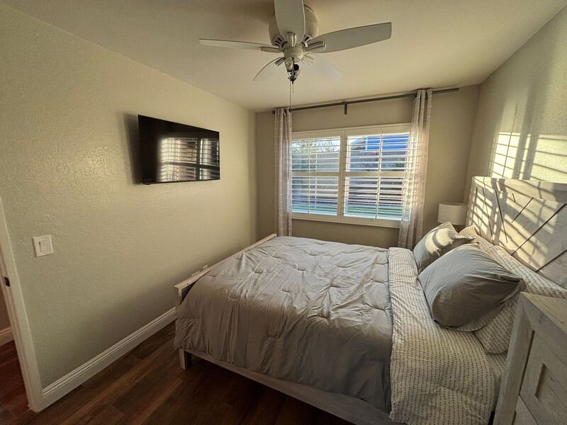 Utilities included!!! (up to $350/month) — covers Wi-Fi, gas, water, trash, and electricity. **Brand-new furnished home — walk to downtown La Verne, Casa Colina, and ULV. Perfect for insurance relocation or corporate housing. Fully turnkey — just bring your suitcase** Rent: $4,400.00 Security Deposit: $4,400.00 Shorter Term Lease Available (3+ month) 3 Bedrooms with Bed, Dresser, and Wall-Mounted TV in Each 2 Full Bathrooms Spacious Living Room with Sofa, Coffee and Side Table, Media Center, TV, and rug Updated Kitchen with Recessed Lighting, Stone Countertops, Refrigerator, Dishwasher, Gas Stove, and Built-In Microwave Silverware, Cookware, Coffee Maker Included Dining Area with 6-Person Dining Table Central Heat/AC with Nest Smart Thermostat Primary Bedroom with En-Suite Bathroom and Sliding Glass Door to Backyard Desk and TV in Primary Bedroom Landscaped Backyard with Covered Patio, Concrete Decking, Grass Area, Planters, And Block Walls Large Driveway with Ample Parking 2 Car Garage with Padded Flooring and Insulated Garage Door Washer And Dryer in Garage Owner Pays for Landscaping Service No Pets Nearby Points of Interest - 0.5 miles -> Casa Colina Hospital - 0.7 miles -> Downtown La Verne - 0.7 miles -> Pomona Fairplex - 0.8 miles -> University of La Verne - 4.4 miles -> San Dimas Community Hospital