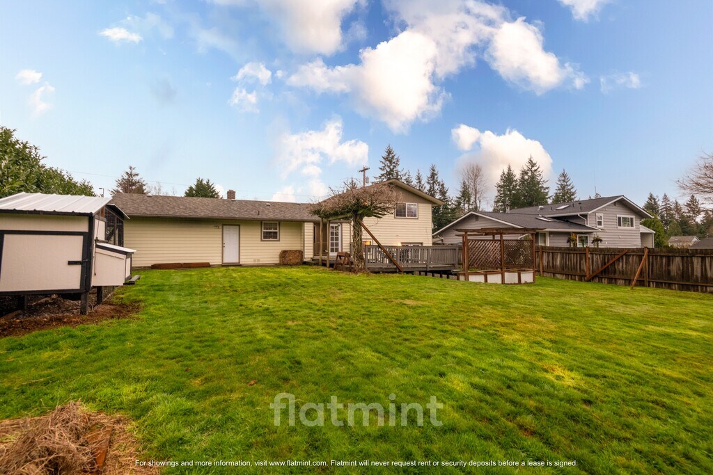 Welcome to this recently renovated 4-bedroom, 2-bath home offering modern comfort and generous outdoor space. The updated kitchen features newer appliances and opens to bright living areas with newer flooring throughout. All bedrooms are spacious and well-proportioned, providing plenty of room for rest or work-from-home needs. Step outside to a large, fully fenced backyard with a spacious deck perfect for entertaining or relaxing. The property also includes a chicken coop, garden shed, spacious bonus room, and garage parking for added convenience. Ideally located near Costco, and Safeway, with easy access to nearby highways for commuting. This home combines thoughtful upgrades, ample space, and a convenient location, ready for its next residents. Application: Property Viewing: Prospective tenants must view the property before submitting a rental application. Lease Start Date: Available 01/11/2026, lease must start within 21 days or will be subject to higher rate. Application fee: $55 per person over the age of 18 Terms: Lease Term: 12 months Security Deposit: Equal to one month's rent minus application fees Insurance: Renters Liability Insurance required ($100,000 coverage minimum) Fees: Tenant is responsible for all building move-in and move-out fees if applicable Utilities: Tenant's responsibility except water, trash & sewer Laundry: In-unit Parking: Street Garage, Driveway Heating Source: Forced Air Cooling System: None Pets: 1 pet dog (20 lbs or less), $300 deposit per pet, pet rent $50/month per pet Disclosures: We do not accept Comprehensive Reusable Tenant Screening Reports as defined by and pursuant to RCW 59.18. Applicants and tenants must independently verify all information before signing the lease. Flatmint and its brokers have established an agency relationship with the property owners, Flatmint is the property manager. Tenants must verify all information, including but not limited to: permits, uses, bed/bath counts, square footage, and school enrollment availability. Tenants are advised to independently investigate all aspects of the property and verify the accuracy of the information through personal inspection or with appropriate professionals. Neither Flatmint nor its agents provide tenant representation. Prospective tenants are encouraged to seek independent representation at their own expense, should they choose to do so. LIC: 23029017 View our Rental Criteria and Application Disclosure at Flatmint Website