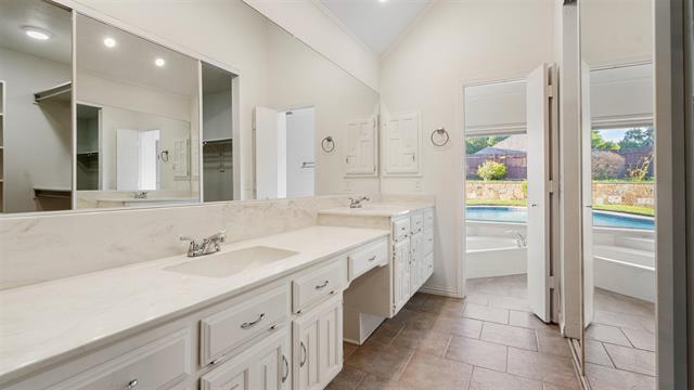 This Bedford gem on the Colleyville border is set in a very clean and well-kept neighborhood. Inside, you’ll find lots of natural lighting and a split bedroom layout that offers privacy, with the second bedroom featuring its own ensuite bath. The 4th bedroom stands out with tall ceilings and abundant natural light, making it a perfect option for a home office. The backyard is a retreat with a sparkling pool, extended covered patio with ceiling fan, and plenty of space for entertaining or relaxing. A 2-car garage plus oversized parking easily fits an RV. With no HOA, and quick access to shops, parks, and major freeways, commuting to DFW Airport is a breeze.