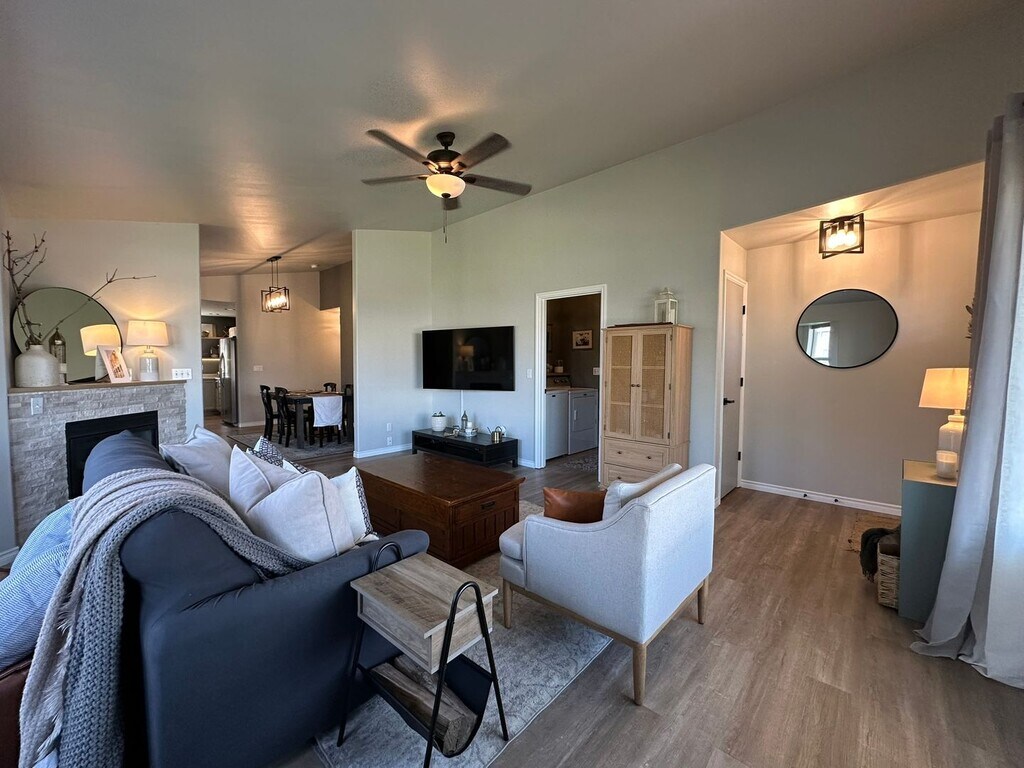 Beautiful and well cared for 3 bed, 2 bath home with a backyard oasis! Available to reserve now for an approximate early to mid July lease start. This home has upgraded finishes and hard flooring throughout. Living room has high ceilings, a corner gas fireplace and many windows for natural light. The kitchen comes fully equipped with stainless steel appliances, plenty of cabinet space plus open shelving. The spacious master bedroom has a private bathroom complete with tile shower and glass doors. The 2 additional bedrooms are both generously sized. Washer and dryer in laundry room are included. Keep comfortable with central heat and air conditioning. 2 car attached garage. Enjoy your beautiful landscaped outdoor space in front and back, including a fenced back yard with back patio and pergola. The yard has an underground sprinkler system and landlord pays for lawn care! Dogs or cats may be considered with a $50 pet fee per pet per month. 2 pet maximum. All animals must be screened through PetScreening during the application process. Rent is $2,400 per month, with a $2,400 security deposit. 12 month lease with annual renewal option. Rent is based on a 3 adult maximum occupancy. A non-refundable cleaning fee of $700 will be required at lease signing. A non-refundable application fee per adult is required. For more information contact Ellensburg Property Management at 509-925-RENT, or view our other available rentals at our website