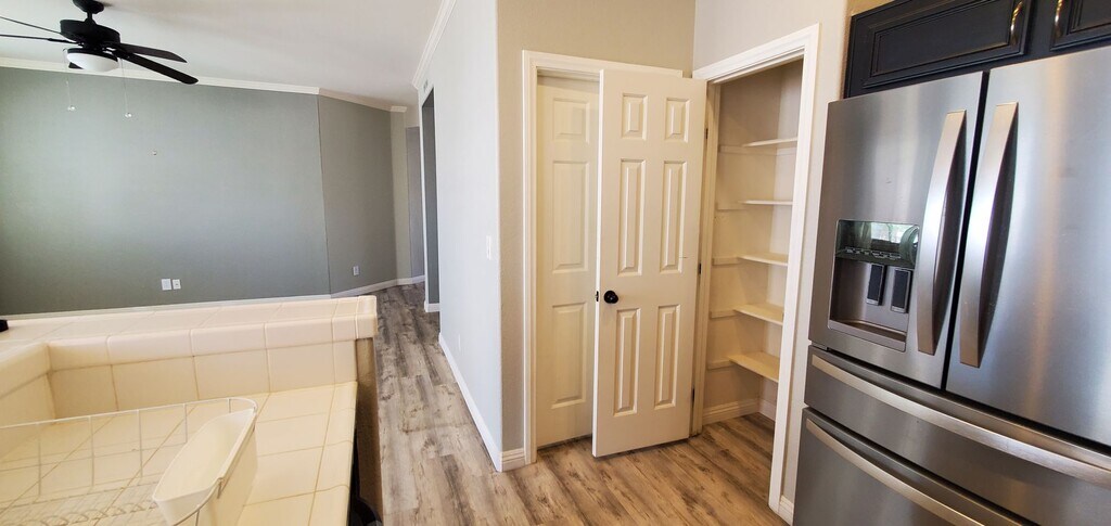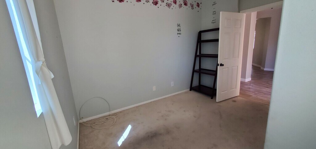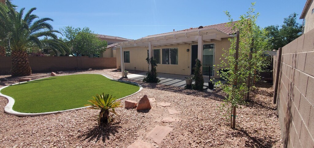 Welcome to this inviting single-story home that perfectly blends comfort, style, and outdoor potential! Featuring 3 spacious bedrooms and an open-concept floorplan, this home is designed for both everyday living and effortless entertaining. Step inside to discover a freshly painted interior highlighted by soaring high ceilings, elegant crown moulding, and ceiling fans throughout for year-round comfort. The home showcases laminate floors in all wet areas, combining style with practicality. Out front, enjoy a beautifully landscaped, low-maintenance yard accented with mature bushes—ideal for easy upkeep without sacrificing curb appeal. Out back, the possibilities truly shine. The north-facing backyard provides a more comfortable outdoor environment year-round, while the covered patio is perfect for relaxing or entertaining. There is no dishwasher at this property (or a place for one). We are looking for 650 or better credit, 3 x income and 2 landlord references (unless homeownership).