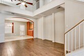 Beautiful 3 Bedroom, 2.5 Bath Home in South Central Austin Stylish two-story home built in 2005, just minutes from parks, trails, and shopping. Features an open and bright floor plan with high ceilings and gorgeous wood flooring throughout. The versatile upstairs space can serve as an office or playroom, offering a lovely view of the park. Enjoy covered porches in both the front and back, plus a spacious 2-car garage.