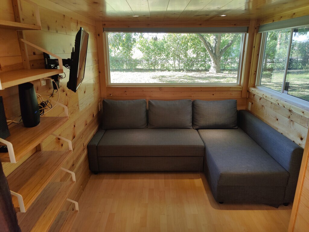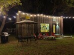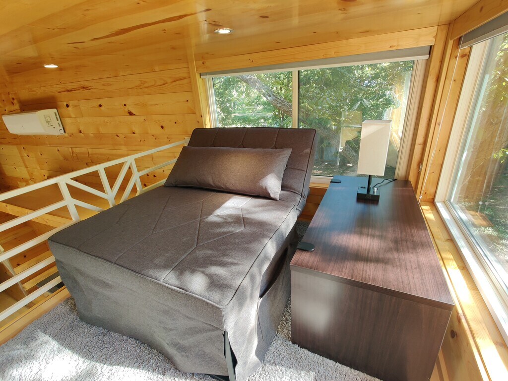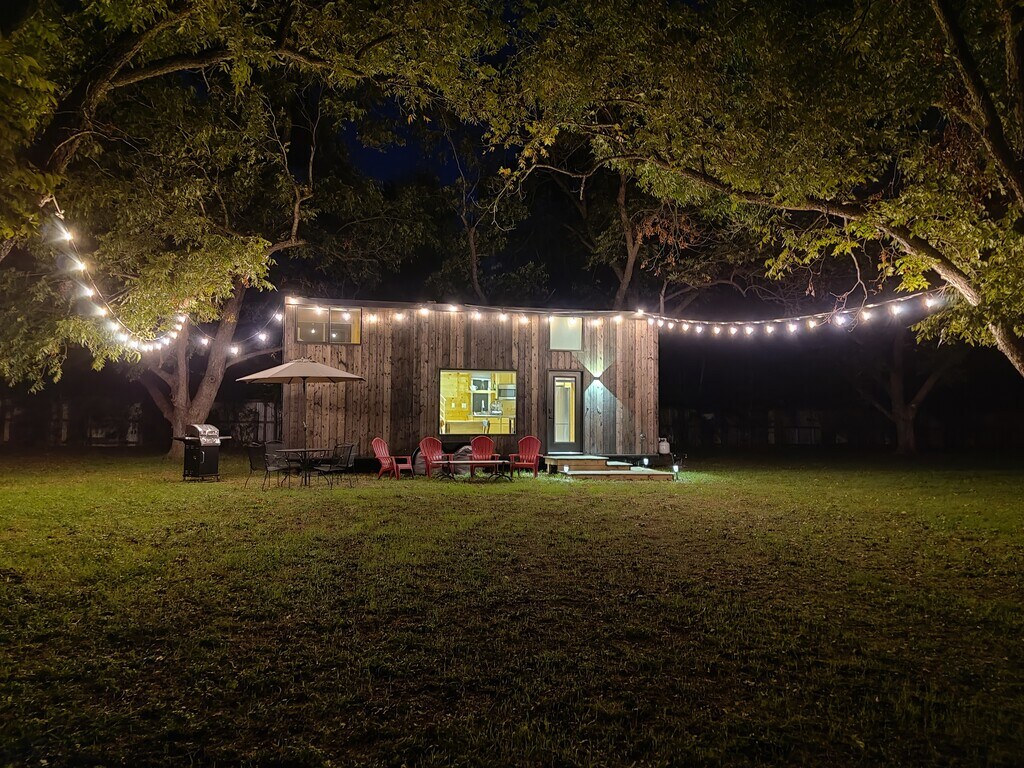 Tiny home Casita Nueces will make you want to stay forever. Furnished and pet friendly, nestled in our 14 acre pecan orchard, you can enjoy the countryside while being 10 minutes away from San Marcos and in between Austin and San Antonio! There's 2 lofts, one with a queen bed and one with a sofa twin bed. Downstairs is a living room with a sofa that turns into a queen bed. Bed could also be placed downstairs if desired. Furniture that is included: Refrigerator, washer/dryer combo, microwave, Queen size mattress with base, smart TV, living room sofa bed, dining table and 2 chairs, dresser drawer, countertop electric oven, outdoor patio tables with chairs, grill and string lights. If you don't want or need an item, we can remove it from the Casita. Rent includes water, sewer, trash service and landscaping. Electricity is metered and is paid separately.