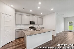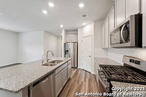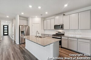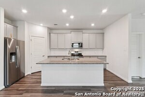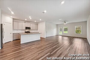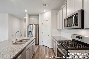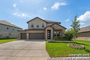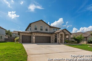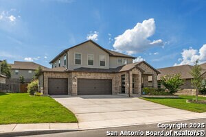 This home will steal your heart the moment you pull up. Built in 2021 and barely lived in, this beautifully maintained property sits on a oversized lot complete with a rare 3-car garage. The only one in the neighborhood! Step onto the welcoming front porch and into an open, light-filled layout. Just off the entry, a spacious home office offers the perfect spot to work or create. The main level features a generously sized primary suite with bay windows, blending privacy and comfort in one serene retreat. Designed with efficiency and ease in mind, this home includes spray foam insulation, a new water softener, freshly installed gutters, Whirlpool appliances with gas cooking, and overhead storage in the garage-every detail carefully chosen for modern living. Enjoy peaceful neighborhood walking trails, a 1-minute walk to the community pool and playground, and the convenience of an on-site elementary school just steps away. Commuters will love the easy access to Hwy 151 and Loop 1604, making downtown, Lackland AFB, and Ft. Sam Houston all easily reachable. Plus, you're within 3 miles of SeaWorld, three major hospitals, popular shopping centers, and fitness options.