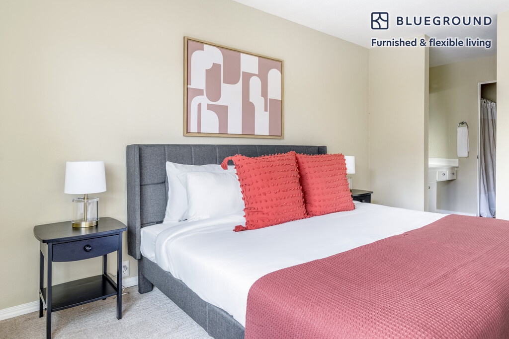 Discover the best of Sunnyvale, with this three bedroom apartment in Sunnyvale West. It’ll be easy to simply show up and start living in this furnished apartment with its fully equipped kitchen, living room, and our dedicated, on-the-ground support. (ID #SFO450) The advertised rate of $4,360/month is the lowest available price, based on a 12 month(s) stay with a move-in date of June 16, 2026. Rates vary depending on the duration of stay, season, and other parameters. For exact pricing and additional pricing components, please visit our website and enter your desired move-in and move-out dates. The rate is applicable when billed upfront; it can be higher if billed in multiple payments. Brokers are welcome to reach out. Were you looking for an unfurnished lease? Try Blueground instead and upgrade from unfurnished to furnished living: - Furnished at rates comparable to unfurnished - No setup or furniture costs - save thousands - Move-in ready - save time, just bring your suitcase Designed with you in mind Thoughtfully designed with bespoke finishes, modern furnishings, and a fully equipped kitchen, you’ll enjoy that “I’m home” feeling with this Blueground apartment. Whether you’re lounging in your stylish living room streaming the latest and greatest entertainment on the smart TV or premium wireless speaker, or getting some well-earned rest on the superior quality mattress with luxury linens, you’ll fall in love with everything this Sunnyvale West apartment has to offer. This apartment also offers in-apartment laundry. Sleeping arrangements King Bed, 70.8in/180cm Queen Bed, 63in/160cm Queen Bed, 63in/160cm Amenities Building amenities unique to this three bedroom apartment include an on-site: - BBQ Area - Dryer - Swimming pool - Washing machine - Parking - Pets allowed Arrival and ongoing support The entire apartment is yours to enjoy! Throughout your stay, you’ll have access to our Client Experience team through the Blueground App. You can schedule additional cleanings, submit maintenance requests, and view our neighborhood recommendations with just a few taps. We’ll share all details upon confirmation of your stay. Other things to note Building amenities may have an extra cost. This Blueground apartment has flexible lease options, allowing you to book it for one month, a year, or more. Pets are welcome, though weight limits and breed restrictions apply and may incur fees. Parking is offered based on availability and is subject to a fee. Please keep in mind that this is a walk up building. We take great pride in ensuring every photo displayed is shot in our own units with our actual furnishings. That said, we regularly refresh our decor and furniture arrangement, which may differ from what’s pictured. [SI]
