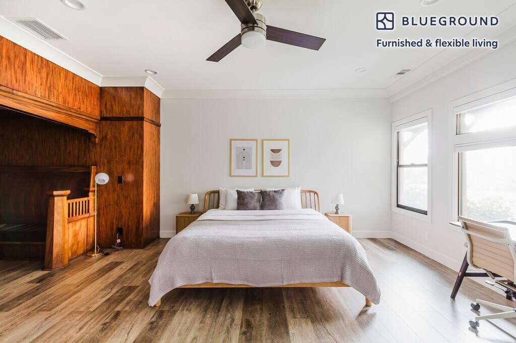 Feel at home wherever you choose to live with Blueground. You’ll love this roomy Crescent Park furnished two bedroom apartment with its modern decor, fully equipped kitchen, and cheery living room. Ideally located, you’re close to all the best that Palo Alto has to offer! (ID #SFO1793) The advertised rate of $6,310/month is the lowest available price, based on a 12 month(s) stay with a move-in date of March 9, 2026. Rates vary depending on the duration of stay, season, and other parameters. For exact pricing and additional pricing components, please visit our website and enter your desired move-in and move-out dates. The rate is applicable when billed upfront; it can be higher if billed in multiple payments. Brokers are welcome to reach out. Were you looking for an unfurnished lease? Try Blueground instead and upgrade from unfurnished to furnished living: - Furnished at rates comparable to unfurnished - No setup or furniture costs - save thousands - Move-in ready - save time, just bring your suitcase Designed with you in mind Thoughtfully designed with bespoke finishes, modern furnishings, and a fully equipped kitchen, you’ll enjoy that “I’m home” feeling with this Blueground apartment. Whether you’re lounging in your beautiful living room streaming the latest and greatest entertainment on the smart TV or premium wireless speaker, or getting some well-earned rest on the superior quality mattress with luxury linens, you’ll fall in love with everything this Crescent Park apartment has to offer. This apartment also offers in-apartment laundry. Sleeping arrangements King Bed, 70.8in/180cm King Bed, 70.8in/180cm Amenities Building amenities unique to this two bedroom apartment include an on-site: - Dryer - Washing machine - Pets allowed Arrival and ongoing support The entire apartment is yours to enjoy! Throughout your stay, you’ll have access to our Client Experience team through the Blueground App. You can schedule additional cleanings, submit maintenance requests, and view our neighborhood recommendations with just a few taps. We’ll share all details upon confirmation of your stay. Other things to note Building amenities may have an extra cost. This Blueground apartment has flexible lease options, allowing you to book it for one month, a year, or more. Pets are welcome, though weight limits and breed restrictions apply and may incur fees. Please keep in mind that this is a walk up building. We take great pride in ensuring every photo displayed is shot in our own units with our actual furnishings. That said, we regularly refresh our decor and furniture arrangement, which may differ from what’s pictured. [SI]
