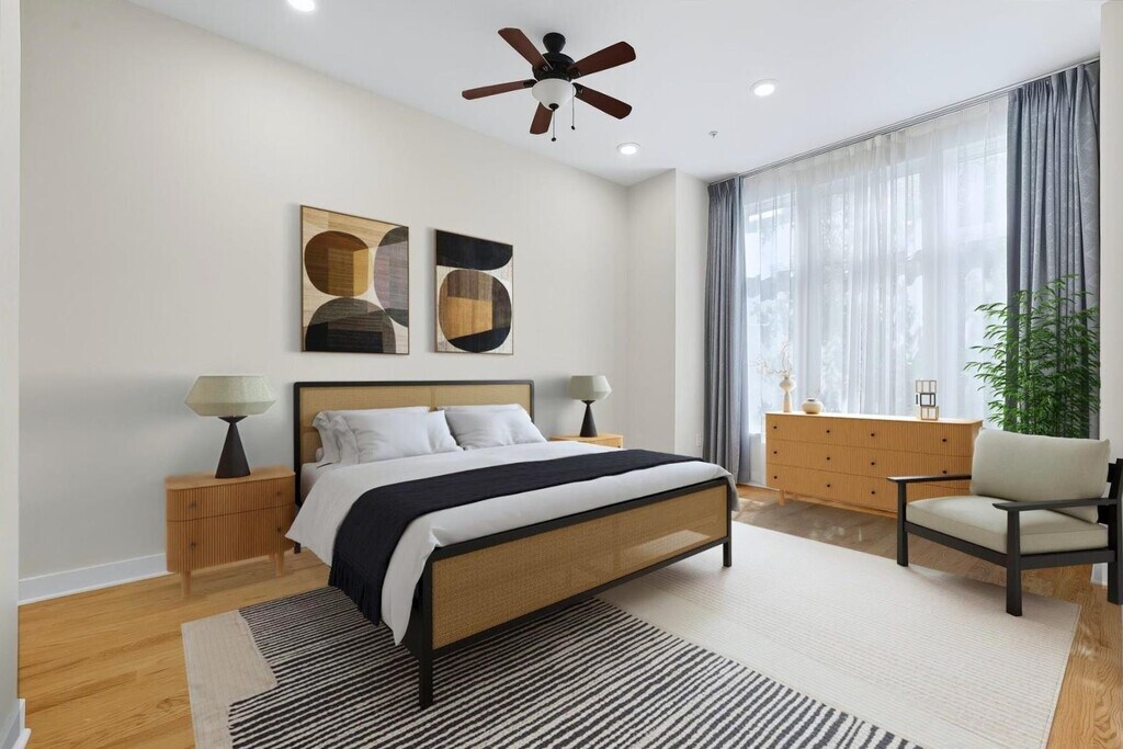 The Cheesecake Lofts; Boutique Residences in an elevator building, built in 2016. This stunning 2 Bedroom, 2 Full Bath + private terrace, open-concept home features 10 ft ceilings, hardwood floors, central air, in-unit washer/dryer, on demand Navien water heater, and thermal insulated Pella windows. The open kitchen overlooks the living and dining areas with stainless steel appliances, granite countertops, Porcelonsa floor tiling, and custom backsplash. Facing South toward a quiet residential street, large windows illuminate the main living area and primary suite. Adjust the lighting with the custom window treatments through the sheer or blackout layers. Custom cabinets in both bathrooms along with shelving in the bedroom closets offer convenient storage. Unit is wired for Verizon FIOS to help meet your entertainment and home-office needs. Nearby parking garages available! Perfect walkable location in vibrant Downtown Jersey City; 4 blocks to the Grove Street PATH station, multiple grocery stores, and 2 blocks to Newark Avenue Pedestrian Plaza!