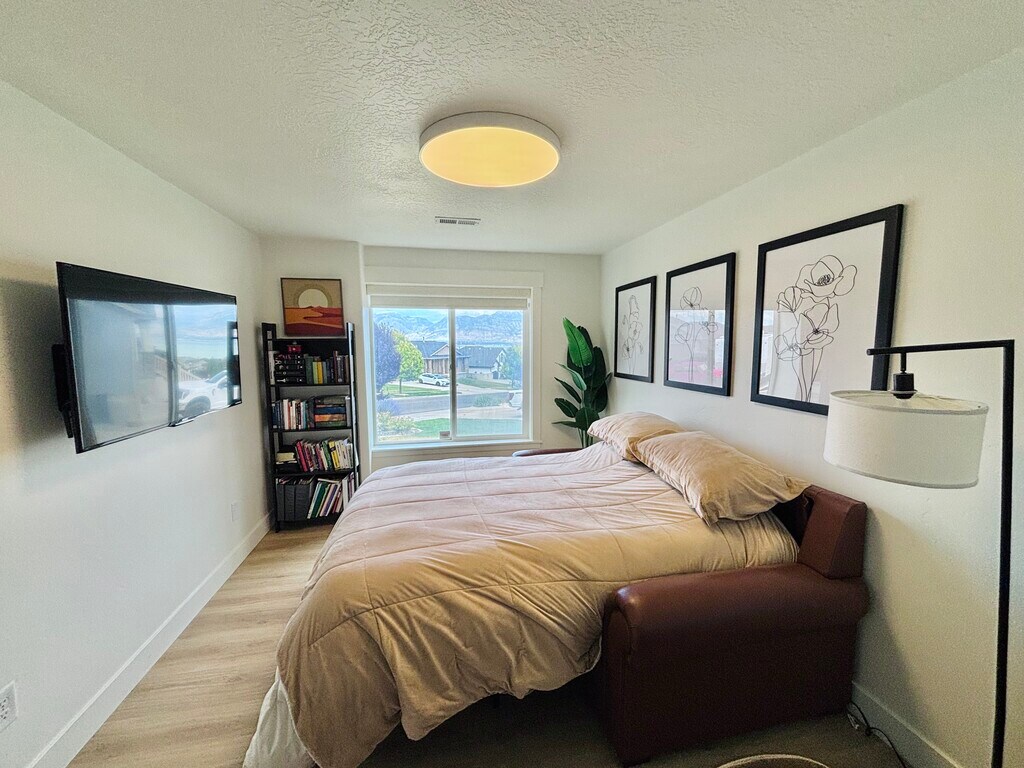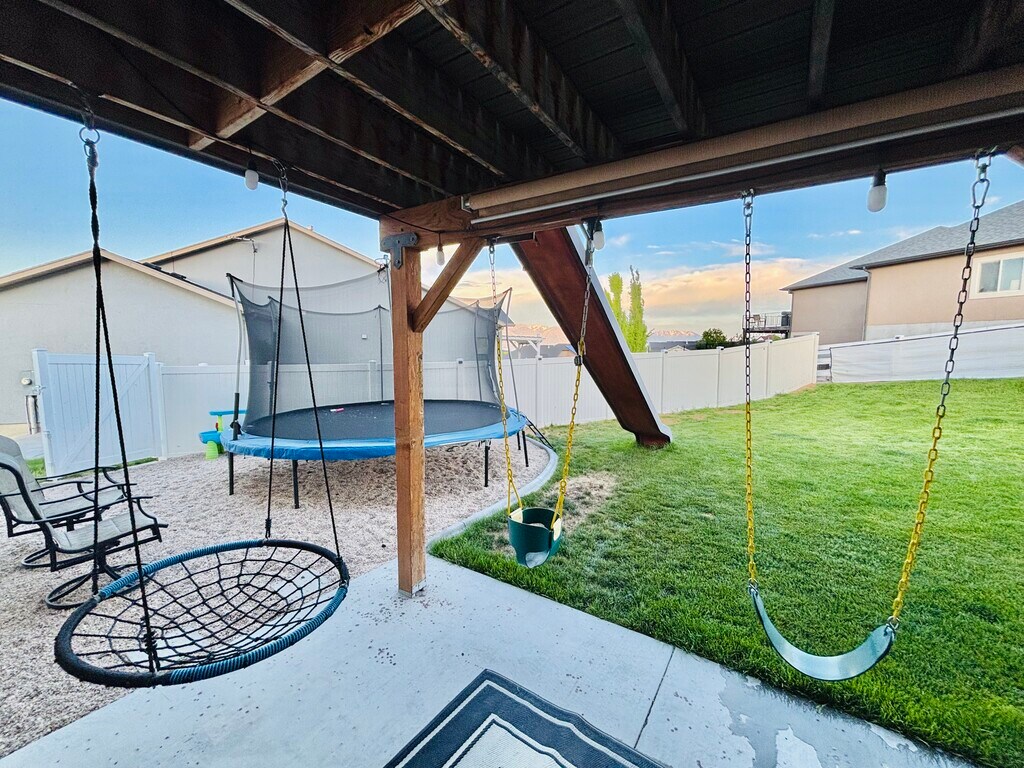 Spacious 5-Bedroom Retreat with Steam Sauna, Lake Views & Modern Upgrades This isn’t just a rental—it has been our cherished primary home, cared for inside and out with love and attention to detail. Every update has been made with quality and comfort in mind, and now, for the first time ever, we’re opening it to you who will be the very first to enjoy it. Step inside and you’ll find 5 spacious bedrooms and 3.5 bathrooms, including a brand-new master bathroom SUITE designed for rest and relaxation. The fully finished basement offers a guest retreat with its own bedroom, a steam sauna built into the shower, and walkout access to the large, fully fenced backyard. Spacious basement to entertain friends and family. The front porch and patio are dreamy—offering million-dollar views of the lake where mornings start with peace and evenings end with magic. There's nothing like the 4th of July, watching fireworks POP and sparkle across the COUNTY. Inside, gather around the cozy gas fireplace, cook in the updated kitchen with a fresh backsplash, and appreciate thoughtful details like fandeliers in each bedroom, upgraded flooring and lighting, and fresh paint throughout. The holidays are easy with permanent, app-controlled Christmas lights. The home is also designed for function: a xeriscaped yard with a kids’ play area, an epoxy-coated garage with a large built-in workbench and cabinets, and a huge cold storage room. The property also features a large side yard, perfect for RV/BOAT PARKING. Adventure is your backyard with mountain biking and ATV/UTV trails, plus the Marina, just minutes away. To make life even easier, the home is equipped with smart automation features including app-controlled sprinklers and dual-zoned smart thermostats, giving you control over comfort and efficiency throughout every season and floor. All appliances are included (fridge, washer, and dryer)—making the home fully move-in ready. This is more than a place to rent. It’s a home that has been loved, cared for, and upgraded—now ready for new memories, new laughter, and new stories.