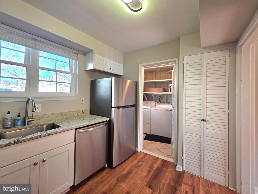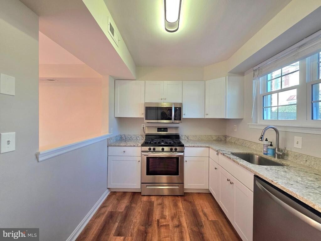 2510 N Dearing St is a beautifully updated two-bedroom, one-and-a-half-bath townhouse offering both comfort and style. The main level features luxury plank flooring, upgraded windows, and a modern kitchen with granite countertops, white shaker cabinets, and stainless steel appliances, along with a washer and dryer in the unit. The living area opens to a private, fenced-in walkout patio, perfect for outdoor relaxation. Upstairs, the second floor features hardwood flooring throughout. The front bedroom offers two closets, a ceiling fan, and built-in bookshelves, while the upgraded bathroom showcases designer 12×24 tiles, a quartz countertop vanity, and stylish finishes. Open community parking is available, and the home’s convenient location near I-395 provides easy access to DC, Old Town Alexandria, shopping, and dining. Pet-friendly for up to two dogs under 50 lbs each (some breed restrictions apply); cats are not permitted.