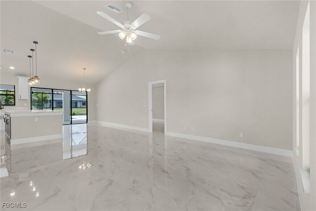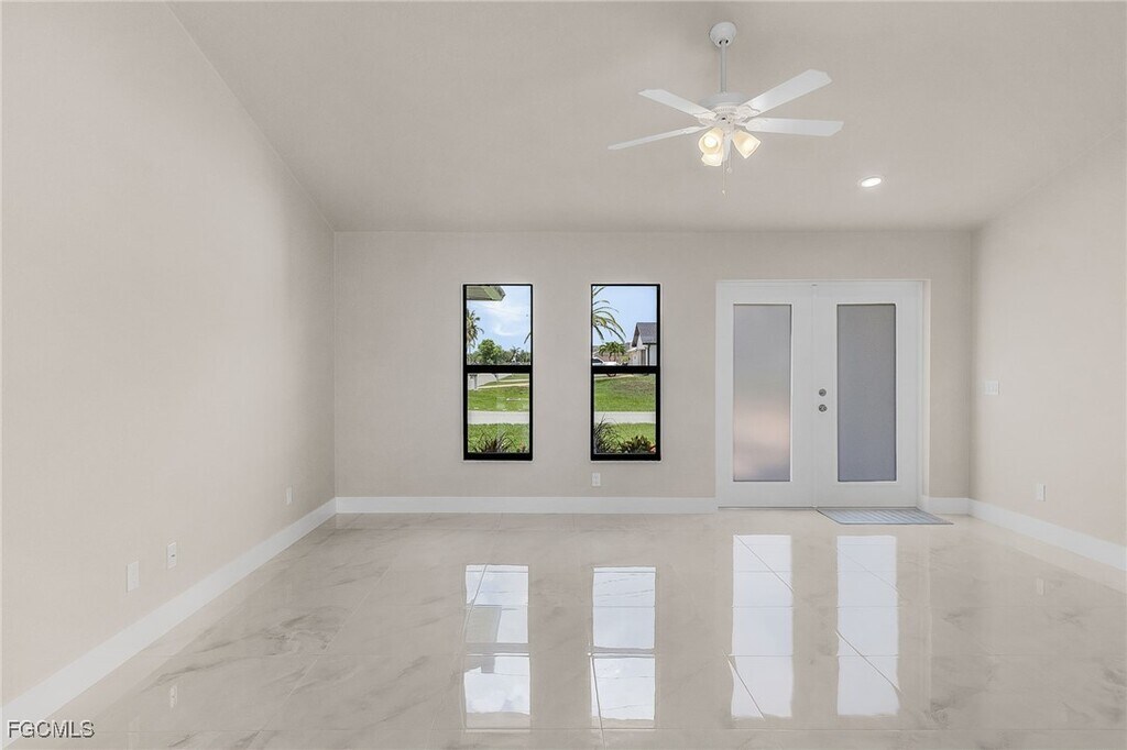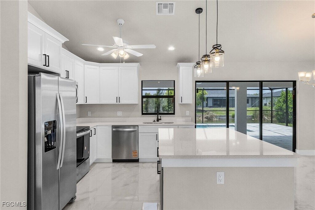 Be the first to live in this brand-new Gulf access pool home! Located in a quiet SW Cape Coral neighborhood near a cul-de-sac,this never-lived-in property offers 4 bedrooms,2 baths (including a convenient pool bath),and 1,887 sq. ft. of modern living space. Enjoy high ceilings,upgraded tile throughout,and an open-concept layout that flows to the expansive lanai with a resort-style pool,sun shelf,and outdoor shower. The kitchen features quartz counters,soft-close cabinetry,and stainless appliances. The primary suite includes a luxurious walk-through shower with dual heads. Additional features: 3-car garage with epoxy floors,western exposure for beautiful sunsets,and no flood insurance required. Schedule your private tour today.